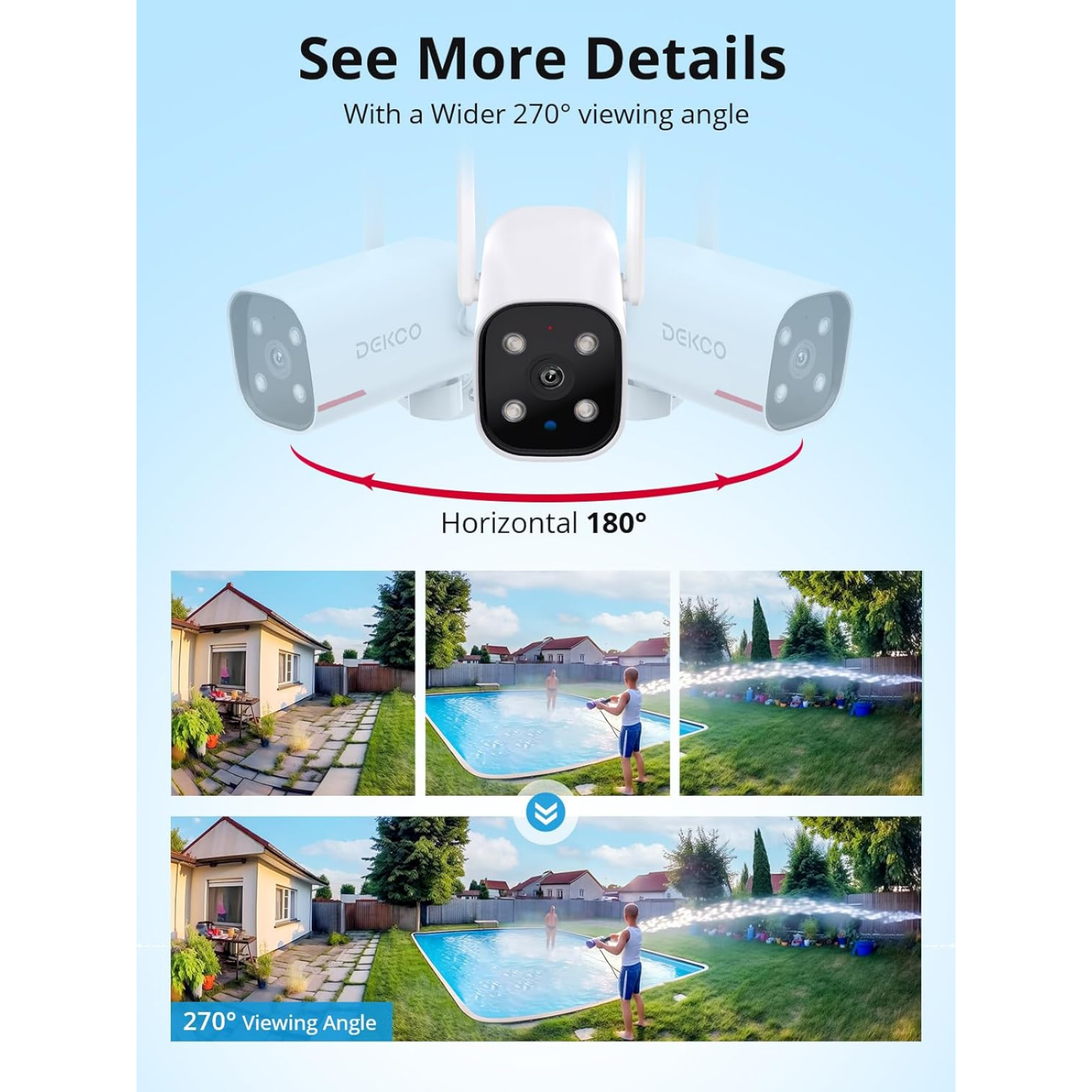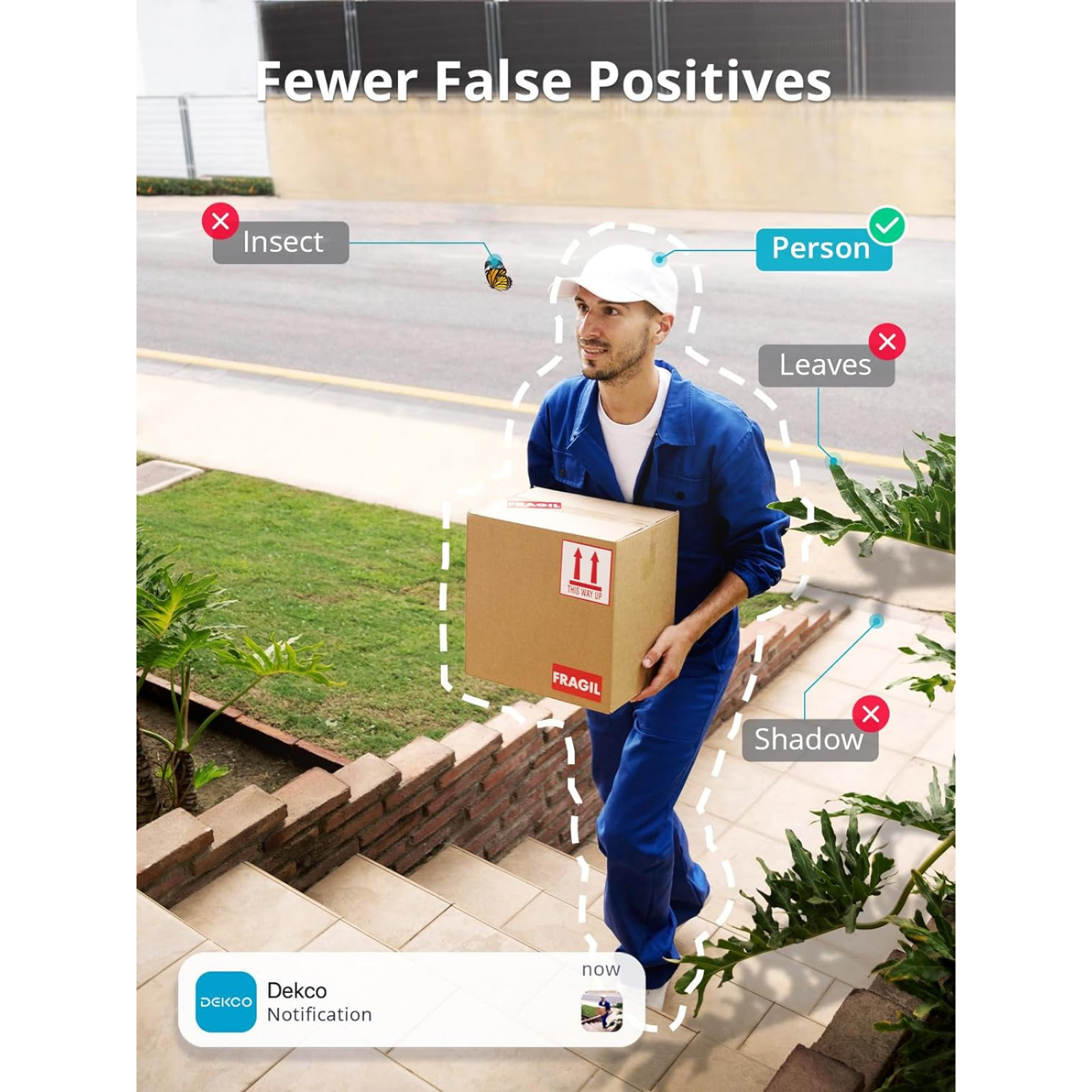 Description: Enhance your home security with the DEKCO Outdoor Security Camera , designed for ultimate clarity, convenience, and peace of mind. With advanced features like 2K resolution, AI detection, and smart home integration, this camera ensures you stay connected and protected day and night. 2K Ultra-Clear Color Night Vision: Experience crisp, vibrant visuals even in complete darkness with 2K ultra-high resolution and spotlight color night vision technology . Monitor your property with unmatched clarity at all hours. Stable Dual-Band WiFi Connection: Equipped with 2.4GHz and 5GHz dual-band WiFi , this camera ensures a stable, uninterrupted connection, providing reliable surveillance without network disruptions. Flexible Storage Options: Choose between local storage with an SD card or cloud storage for continuous 24/7 recording. Revisit and save important moments anytime with ease. Smart AI Human Detection: Reduce false alarms with advanced AI technology that accurately detects human figures while filtering out irrelevant motions from animals, vehicles, or insects. Receive precise alerts that truly matter. Seamless Smart Home Integration: Fully compatible with Alexa and Google Home , this camera allows for hands-free control. View your live feed or adjust settings effortlessly with simple voice commands. Whether for home or business use, the DEKCO Outdoor Security Camera combines cutting-edge technology with user-friendly functionality, delivering a reliable and secure surveillance solution.