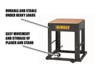 Contact Us Add to Favorite Contact Us Fast Shipping Hassle Free Return eBay Money Back Guarantee Authenticity Guarantee Features Easy to move and store your planer and stand Stable construction for heavy loads Item Description Use the DEWALT mobile thickness planer stand to use, store and transport your DEWALT thickness planer. This planer stand is durable and stable even under heavy loads. There are pre-drilled holes so setting up your DEWALT thickness planer is quick and easy. You can also use this tool stand with any bench top power tool. Color Family: Black Power Tool Accessory Type: Stand Returnable: 30-Day Tool Stand Features: Foldable Tool Stand Type: Multi-Use Work Station Tools Product Type: Power Tool Product Depth (in.): 30 in Product Height (in.): 6.5 in Product Width (in.): 24.25 in Work Table Height From Floor (in.): 30 in Work Table Length (in.): 24 in Work Table Width (in.): 22 in About us Customer service is our top priority! Please be sure to read the description thoroughly to make sure that this is the item you want before making a purchasing decision. If you have any questions about this item, please contact us via eBay messages before placing your order. We make every effort possible to accurately describe and depict the items. Please be aware that slight variations in color may be due to differences in lighting and computer monitor resolutions. All items are in stock at the time of listing; however, in the unlikely and unforeseen event that we are unable to fulfill your order through any of our networked warehouses, we will notify you as quickly as possible and offer you a 100% refund on your purchase. Thank you for shopping with us. We appreciate your business! Payment PayPal is our preferred method of payment. If you do not have a PayPal account, all major credit cards are gladly accepted through PayPal as the payment processor. PayPal offers great buyer and seller protection. Your order will be processed pending receipt of cleared payment through PayPal. Sales tax may be charged depending on your location. Shipping We provide fast, free shipping. Most items are shipped within 3-5 business days of receiving cleared payment. We ship to the lower 48 contiguous United States only. We do not ship to P.O. Boxes or APOs. For select items, we ship internationally through eBay?s Global Shipping Program. We do ship most of our smaller items internationally using eBays Global Shipping Program. If ordering electrical items outside of the U.S., please note that they will come equipped with a standard U.S. voltage plugs. You will need a suitable adapter to use the item in your country. Certain restrictions apply. Standard or Economy Shipping is ALWAYS FREE! You will be notified via eBay messages as soon as your items ship. Special Notice for Freight Items: If an item ships via Freight (Truck) Delivery, a valid phone number will be required so that we can contact you to schedule delivery. The item may be delivered with curbside delivery. An adult signature will be required. Please be sure to have available help on hand to assist you with moving the item to the desired location in or outside of your home. Freight items must be inspected upon delivery. In the unlikely event that damaged is observed, you MUST refuse delivery and note the damage on the shipping receipt and send it back via the Freight carrier. Returns will not be accepted on Freight items after they have been delivered, inspected, and the driver has left the premises. Returns We offer a 30 day return/exchange policy for most of our products. You can request a refund if you are dissatisfied for any reason with your product. (Restocking Fee May Apply). Only factory defects are accepted as a reason for a return. In the case of factory defects, if available, we will replace the product for you. When returning an item, it must be in all of the original packaging and include all of the original accessories or items that came with it. The item and package should be in original and perfect condition. You will be required to cover shipping on the return of non-defective items. All returns MUST be done within 30 days of date of purchase. Please note that we cannot give refunds or replacements after the 30 day limit has expired. When sending in a return, please note that it can take up to 7 business days for the return to be processed. We do our best to process as quickly as possible. We are extremely fair, and in the rare event of something out of the ordinary happening with our products or shipping, we will gladly work with you to find a fair resolution. Disclaimer Were sorry, but we do not honor product exchange requests. If you need to exchange an item received, you will need to go through the normal returns process identified in our returns section and then order the correct item, if it is still available. Orders are processed immediately and dispatched to fulfillment as soon as they are received. For this reason, we are typically unable to honor cancellation requests. If you need to cancel the transaction, please contact us as soon as possible and we will attempt to cancel the order. If the order has gone too far through the fulfillment process, we will be unable to cancel. In that event, you would need to wait until you receive the item and go through the normal returns process as mentioned in the returns section of our policies. Payment Options Shop With Confidence Copyright ©2023, All rights reserved. Listed by Sku Fetch