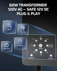 DEWENWILS 12V Landscape Lighting kit, 1x60W Transformer with Timer+8x3.2W Aluminum LED Low Voltage Landscape Spotlight Lights, 100FT Wire+8 Pack Connector for Patio Yard Garden Product description About this item [All-in-One Landscape Lighting Kit] Includes 1x 60W dusk-to-dawn transformer, 1x 100ft wire, 8x 3.2W aluminum spotlights, and 8x fast-lock connectors; all-in-one package ensures a smooth and efficient setup, making it easy to enhance your outdoor environment [Durable LED Landscape Lighting] ETL listed 12V AC/DC wired landscape lights deliver 240lm warm white light at 3000K with a focused 35° beam, ideal for highlighting; durable aluminum with a 135° adjustable head and IP66 waterproof rating, perfect for long-term outdoor use [60W Outdoor Landscaping Lights] Converts 90-240V AC to safe 24V DC for outdoor landscape lights, featuring a built-in dusk-to-dawn sensor and 2/4/6/8H countdown timer for automatic operation; IP66 waterproof design and simple one-button control make it easy to use in any weather [Customizable Landscaping Lights Wired Setup] Comes with 100FT ETL-certified 16AWG low voltage wire and 8 quick-lock connectors for effortless, no-tool wiring; easily position lights anywhere along the wire to build your own landscape lighting system [Versatile 12V Outdoor Lights] This all-in-one landscape lighting accessory is ideal for enhancing the beauty and safety of your yard, garden, walkway, patio, trees, and house exterior—easy to install and perfect for both decorative and functional outdoor lighting