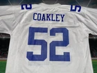 Nice and clean The product is a Dallas Cowboys Reebok jersey featuring player Dexter Coakley's #52 in size Large. This officially licensed National Football League (NFL) jersey is designed for men and is predominantly white in color. It is a preowned item, suitable for fans of the Dallas Cowboys or collectors of football memorabilia. The jersey is a part of the Men's Football Jerseys collection in the Fan Apparel & Souvenirs category.