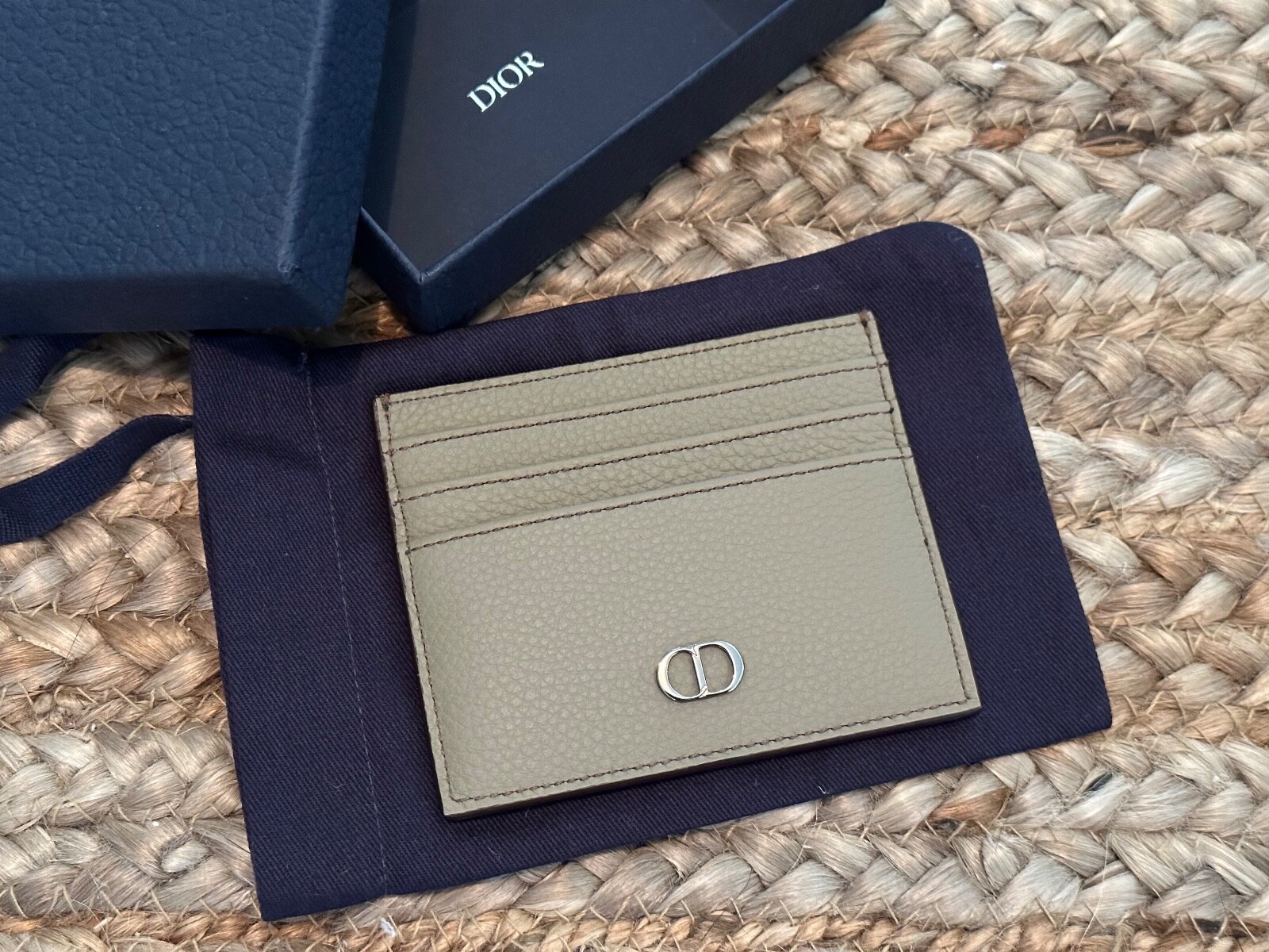 BRAND NEW- NEVER USED Beige grained calfskin Ruthenium-finish brass CD Icon signature on the front Embossed Dior signature on interior Three front card slots Three rear card slots Top card slot Dust bag included Made in Italy/Spain