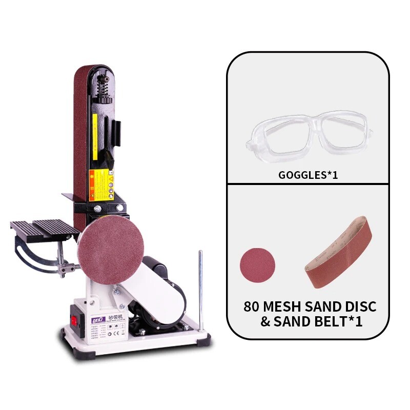 Name: Sand disc belt machine Voltage: 220V 50Hz Power: 500W Belt size: 915*100mm Sand disc size: 150mm Belt table: 295*125mm Sand table: 190*125mm Belt speed: 4.7m/s Sand disc speed: 1420RPM Size: 510*350*330mm Weight: 15KG Belt Polishing Machine DIY Machine Equipment Tool Belt Sharpener For Polishing Machine Woodworking Electric Belt Machine