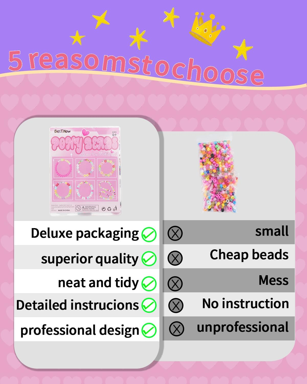 Menu Other Items Feedbacks About Us Contact Us Add To Favorites Bracelet Making Kit Beads for Bracelets Pony Beads Polymer Clay Beads Smile Face Beads Letter Beads for Jewelry Making DIY Arts and Crafts Gifts Toys for Girls Age 6-12 đă Endless Fun & Creativity!ăUnleash your creativity with the BestNow all-in-one bracelet making kit! Comes with 300+ colorful pony beads, 90 polymer clay beads in 6 cute designs (smile faces, animals, fruits, flowers, rainbows, stars), 350 letter beads, smile beads, small round beads, elastic string, and woven ropesâeverything you need to create unique and stylish jewelry! đ ăPremium Quality & Safe MaterialsăCraft with confidence! BestNow beads are lightweight, durable, waterproof, and made from skin-friendly materials that wonât fade over time. Safe for kids and adults to wear every dayâeven while swimming or bathing! đ¨ ăPerfectly Sized & OrganizedăNo more mess! Beads come in a 27-grid plastic box for easy storage & access. Each bead is perfectly sized for bracelet makingâpony beads (9mm), polymer clay beads (10mm), and letter beads (6mm). ⨠ăEndless DIY PossibilitiesăMake bracelets, necklaces, keychains, hair accessories, and more! Let your imagination run wild as you mix and match letters, smiley faces, animals, and stars to create stunning jewelry pieces with BestNow! đă Best Gift for Girls & Craft LoversăLooking for a fun and meaningful gift? This BestNow DIY bracelet making kit is the perfect present for girls who love crafting! Great for birthdays, Christmas, Thanksgiving, and sleepovers! Helps improve creativity, hand-eye coordination, and problem-solving skills while having a blast! Product Description Item Specification Item model number pony beads Item dimensions L x W x H 9.06 x 7.48 x 0.67 inches Age Range (Description) Kid Color 24 Color Included Components pony beads Material Plastic Country of Origin China Style Art Deco Item Weight 8 ounces Theme Jewelry Model Name pony beads Seasons All Seasons Art Craft Kit Type Jewelry Making Kit Number of Pieces 800 Special Feature Bracelet Making, Diy Craft Kit Product Dimensions 9.06 x 7.48 x 0.67 inches SHIPPING FREE FREE SHIPPING We are always working hard to ensure your package arrives as soon as possible. Please understand that some factors like weather, high postal traffic, and the performance of shipping companies are outside of our control. We offer free shipping to the lower 48 states. We do not accept P.O. Boxes. Please provide a physical address. If you have a problem or question regarding your transaction please contact us immediately. We will work with you to resolve any problem you may have. Thank you