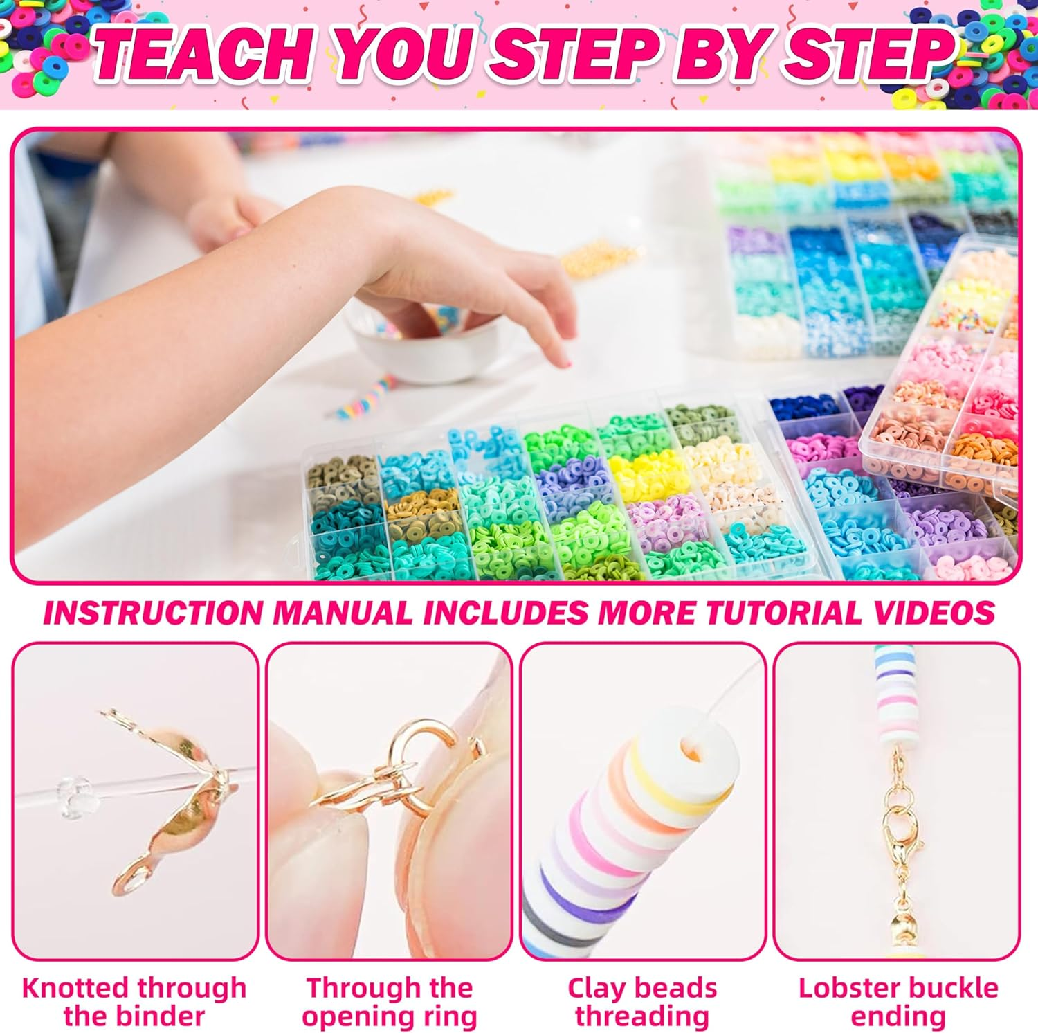Menu Other Items Feedbacks About Us Contact Us Add To Favorites Clay Beads Bracelet Making Kit - 120Color Polymer Clay Beads, Letter Beads, Pendant and Elastic Cords for DIY Jewelry Making Bracelets Necklace Earring Making Supplies 【Perfect Bracelet Making Kit】The kit contains everything you need for bracelet making, including over 12,000 colored polymer clay beads, and other different styles of beads including 320 alphabet beads,10 lobster clasps, 600 different shapes of golden and silver beads, binders, 6 shells, 10 pendants, 4 sets ear wire and hoop, 2 roll elastic string, 6 storage box with 24 compartments. (Everything in the picture is included) 【Premium Material】Our clay beads are made from high quality materials, safe, environmentally friendly, waterproof and skin friendly. The color of the clay beads will not fade and you can wear bracelet every day or at the beach, pool or bathroom. Colorful bracelets add cheer to life 【Various Colors & Styles】Our range includes 120 color of clay beads and a wide variety of making accessories including alphabet beads, different styles of silver and gold beads, pearls, shells, eye beads, smile beads, pendants and so on. You can use your imagination and creativity to make all kinds of bracelets, necklaces, earrings and so on to suit your different needs 【Fashionable DIY Crafts】Our colored beads allow you to make a variety of different styles of bracelets or necklaces. Bracelet making is so easy and fun, even if you're new to it. You can use color beads to make unique and gorgeous bracelets, earrings, necklaces, or even special gifts for your family and friends 【Perfect Gifts for Girls】Our clay bead kits are suitable for making unique DIY crafts such as bracelets, necklaces and more, making them the perfect gift for friends or family. Perfect gift choice for birthdays, Valentine's Day, Christmas, Thanksgiving and more! Product Description Item Specification Item model number AMZ150 Item dimensions L x W x H 6 x 5 x 2 inches Number of Pieces 1 Color 120 Colors Material Plastic Country of Origin China Style Round Item Weight 2.57 pounds Model Name Clay Beads Size Small Product Dimensions 6 x 5 x 2 inches SHIPPING FREE FREE SHIPPING We are always working hard to ensure your package arrives as soon as possible. Please understand that some factors like weather, high postal traffic, and the performance of shipping companies are outside of our control. We offer free shipping to the lower 48 states. We do not accept P.O. Boxes. Please provide a physical address. If you have a problem or question regarding your transaction please contact us immediately. We will work with you to resolve any problem you may have. Thank you