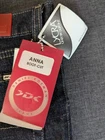 DK jeans Ladies Bootcut Size 10L Col.Dark Indigo Vintage 90's.......... DK jeans stands for Daniel Koeman Jeans ,and was an independent label back in the late 90's that specialised in Quality fabrics and innovative designs This particular jean is a mid waisted jeans , fitted on the thighs and kicks to a boot cut at the bottom hem. This jean is made of 98% Cotton and 2% Lycra and has a zip fly. It has a dark indigo colour and it kicks to a wide boot cut at the hem... And has a long inside leg The actual measured sizes are as follows..... Waist..................29" Inside leg........ 35" Hem bottom........9" Front rise.............10" Thighs...............10" Knees................ 7.5" Please feel free to message....