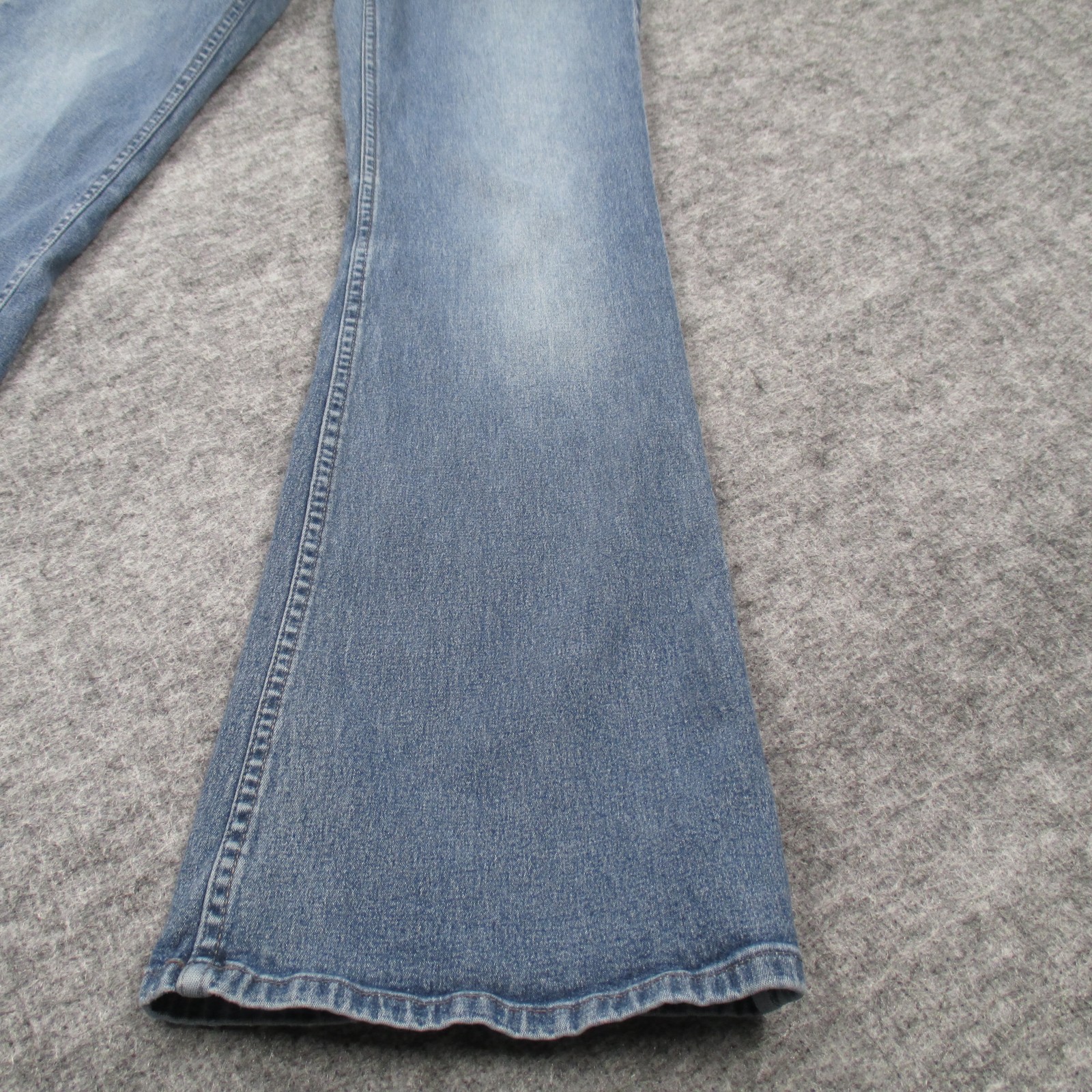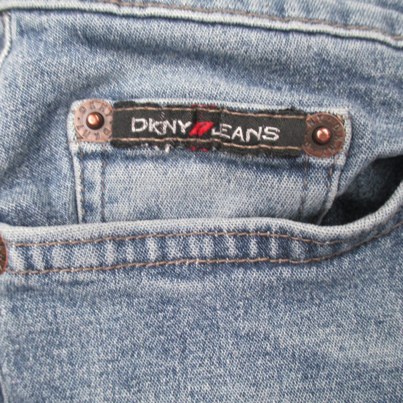 DKNY Jeans Womens 3R Blue Flare Bootcut Denim Stretch Distressed Y2K Classic Condition: Fair used condition with moderate wear. Fraying and holes at the rear hem as shown in photos. Typical fading and wear throughout, zipper and button are functional. Tag size: 3R (Womens) Material: 99% cotton, 1% spandex Classic blue denim with bootcut flare leg and faded whiskering on front Branded DKNY JEANS details on button and patch Zip fly with button closure; five pocket styling Approximate flat measurements (photos): Waist: 13 in across, Inseam: about 30.5 in, Outseam: about 38 in Care: Machine wash cold, tumble dry low, cool iron if necessary Made in USA from imported fabric Great for Y2K casual, retro, or 2000s fashion inspiration