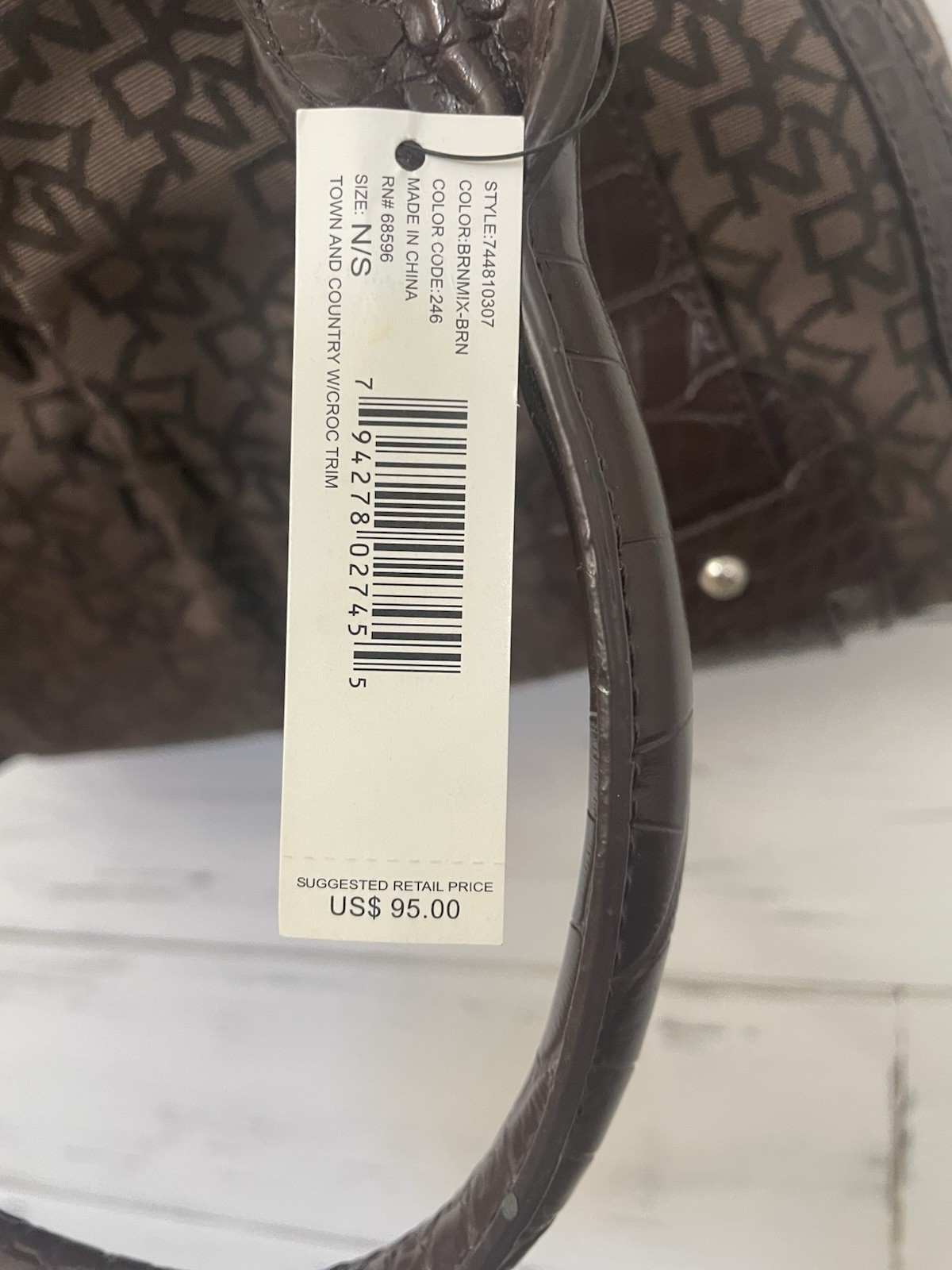 Brand: DKNY Style: Town & Country Satchel / Tote Color: Brown (RBNMX5RN) Material: Monogram canvas with faux crocodile trim Size: NS (standard DKNY sizing) Condition: New With Tags – original DKNY tag attached (MSRP $95). Interior: • Beige lining • Interior zip pocket • Slip pockets • Clean interior This DKNY Town & Country satchel features the classic DKNY all-over monogram pattern with rich chocolate brown faux-crocodile accents and silver hardware. Spacious interior makes it perfect for daily use, work, or travel.