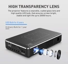 DLP 3D Projector Mini Smart Projectors WIFI 4K Home Theater Built-in Battery Detail Features: 4K HD Recoding: 4K DLP projector produces clear and bright video/imaging for entertainment or office. Up to 200” adjustable screen meet the projection needs of screen mirroring (PPT presentation/ videos) and image/text tracing. Multiple Wired & Wireless Connectivity Methods: Mini projector built-in USB/HDMI/AV/SD port, easy to hookup to camera, storage drive, PC, Laptop & other compatible devices. Also support wireless mirroring between mobile to projector via Airplay or Eshare. WiFi and Bluetooth: With 5G WiFi and Bluetooth functions, network connection and data transmission can be faster and more stable, which is convenient for wireless connection and sharing with other devices. Vivid and Clear Projection: Focus projector boasts 70 Ansi lumen brightness LED Lamp which have a super service-life of up to 20,000 hours, supports 1080P resolution & 500:1 contrast ratio for stunning clear widescreen imaging. Perfect for watching HD movies, photo sharing, playing games. Easy Portability Design Mini Projector: Compact and light weight design portable DLP projector built-in rechargeable battery and speaker. Powers via rechargeable battery up to 2.5 Hrs. Come with remote control, Ideal for outside activities like small meetings/ gatherings or gaming time. Description: Projection Specification Projection Technology DLP(0.2"DMD) Display Chip RGB LED OSRAM Q6 Light Life Up to 20,000 hours Light Luminance 150 Lumens Light Type LED Standard Resolution WVGA 854*480 Projection Area 30-200 inch Contrast 500:1 Projection Ratio 1.4:1(31 inch@1M)) Distortion <1.0% Luminance Uniformity >85% Projection Distance 1-7m Aspect Ratio 16:9 Focus mode Manual focus Keystone Correction Vertical ±40 degree,Horizontal ±45 degree,Multi angle adjustment Projector Character Interaction Projection Mode Front Projection Offset function NO 3D YES System Parameters Screen Mirror Airplay/MiraCast OS Android 9.0 CPU Quad Core ARM Cortex-A55 CPU GPU ARM Mali-G31 MP2 GPU Buffer Memory 2G/4G LPDDR4 Memory 16G/32G EMMC WIFI 2.4G/5G 802.11a/b/g/n/ac Bluetooth BT4.2 Basic parameters Built-in Battery 9000mAh=2*4500mAh (4500mAh 7.4V 33.3Wh) Usage time work for about 2.5 hours Video Support(up to 4k) VP9-10,H.265,H.264,MPEG-4,WMV/VC-1,MPEG-2,MPEG-1,RealVideo 8/9/10 etc. Audio Support MP3,WMA,MP2,OGG,AAC,M4A,MA4,FLAC,APE,3GP,WAV Image Support Supports variety of image formats browsing (jpg, png, bmp etc.) Extended Storage Support TF Card and Hard Disk Remote Control Support(IR) Infrared and 2.4G wireless control Built-in speaker 1*2W Light machine Consumption 11W Whole Power Consumption 16W Power Performance AC100-240V,50/60Hz DC 5V 3A Interface 1* TF Card: Max 32G 1* HDMI: HDMI Input 1.4 2* USB: USB 2.0 Support USB hard disk data read 1* Earphone: Audio output, 3.5mm joint (can connect with earphone or speaker box) 1* DC input: DC 12V 3A Package: 1* Black Mini Projector (4GB+32GB or 2GB+16GB) (NO TF CARD) 1* HD Cable 1* Power Adapter 1* User Manual 1* Remote Control Hot Sale Payment Method Shipping Policy Other Policies Payment Method Payment must be received within 7 business days of auction closing. Shipping Policy We ship it out from China . We ship the package to your paypal address. please make sure you can receive by it. All items are shipped within 1-2 days after payment cleared. Other Policies Any question,feel free to contact us freely. All emails will be answered within 24 hours. If you do not receive our reply, please kindly resent your email. On Jul 23, 2025 at 00:50:46 PDT, seller added the following information: