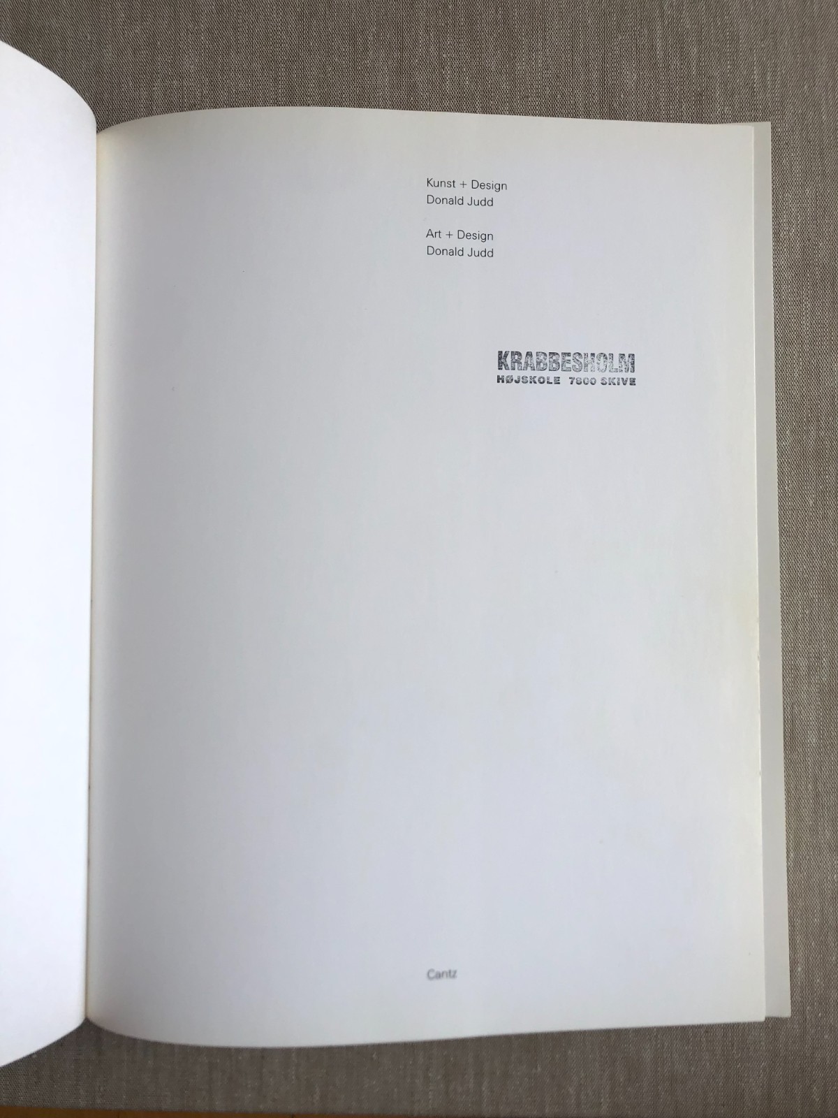 DONALD JUDD : RÄUME SPACES. KUNST + DESIGN : DONALD JUDD, PREISTRÄGER DER STANKOWSKI - STIFTUNG 1993 / ART + DESIGN : DONALD JUDD, RECIPIENT OF THE STANKOWSKI PRIZE 1993 [HARDCOVER EDITION]DONALD JUDD, FRANZ MEYER, RUDI FUCHS, RENATE PETZINGER DESCRIPTION EXHIBITION CATALOGUE PUBLISHED IN CONJUNCTION WITH SHOW HELD AT THE MUSEUM WIESBADEN, DECEMBER 12, 1993 - MARCH 6, 1994. TRAVELED TO THE STÄDTISCHE KUNSTSAMMLUNGEN CHEMNITZ, JUNE 19 - JULY 31, 1994; TO THE BADISCHES LANDESMUSEUM KARLSRUHE, AUGUST 27 - NOVEMBER 20, 1994; AND THE MUSEUM OF THE MODERN ART, OXFORD, JANUARY 15 - MARCH 26, 1995. ESSAYS BY JUDD, FRANZ MEYER, RUDI FUCHS, AND RENATE PETZINGER. INCLUDES BIOGRAPHY, EXHIBITION HISTORY, SELECTED BIBLIOGRAPHY, AND INFORMATION ABOUT THE STANKOWSKI FOUNDATION. PRINTED IN BLACK-AND-WHITE AND COLOR. TEXT IN GERMAN AND ENGLISH.