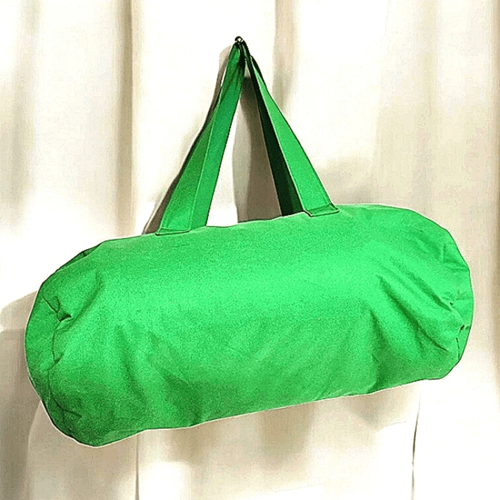 DUFFO CANVAS CARRIER/BAG **LIME Green. **LARGE functional size **Great for school/ sports/overnight gear. **Very well made. Study canvas fabric **Large faux wood button closure **TWO Carry straps **Full ZIPPER across length **Clean. No stains, tears or holes IN VERY GOOD CONDITION *** Shades may vary due to camera filters. This is a bit lighter than depicted
