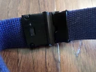 Original Dutch Military Issue Navy Web Belt dark blue in color with plain black roller buckle. belts are 1 1/4" inches wide and 58 inches in length. Belts are adjustable by taking off buckle with clamp on back and cut to your size and simply clamp buckle back on. Good quality belts and buckles. guaranteed military surplus. All of our products are in stock and shipped the same day or the next morning. Check out ebay store for more military belts.