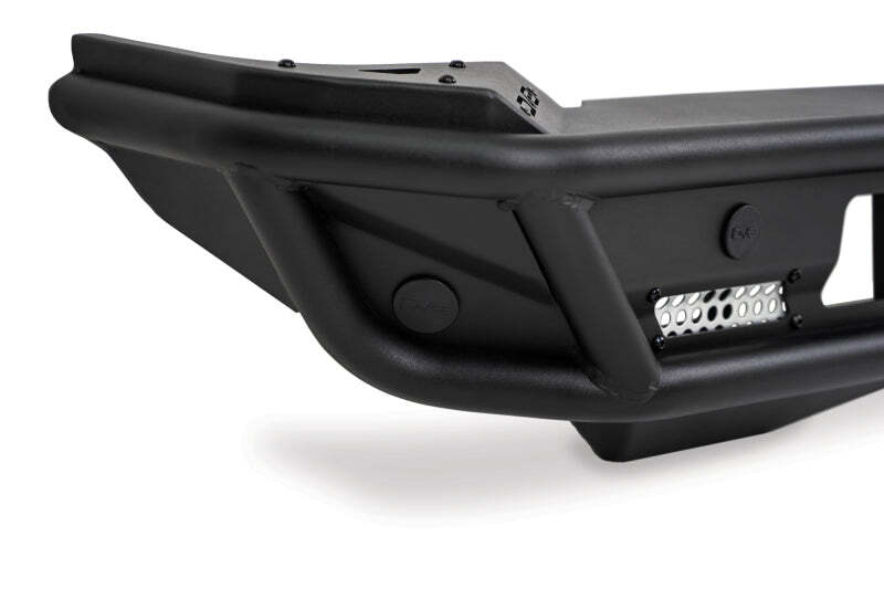 DV8 Offroad?s 6th Gen Bronco Competition Series Rear Bumper is a steel tube & plate constructed low-profile bumper inspired by desert racing. Towards either side of the bumper are light mounts suited for 3-inch LED light pods. Its low-profile design allows you to fit up to a 37-inch spare tire. The OEM reverse sensors are integrated into the bumper via mounting holes, this retains full functionality of the feature. It also accommodates the factory hitch. There are two, paintable aluminum accent panels that help cut weight and add to the style of the bumper. Installation is a simple bolt-on process. 2021-2023 Ford Bronco