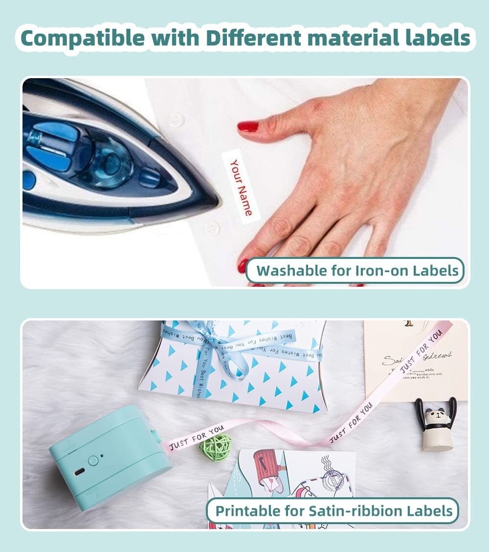 Product Description Phomemo P12 Bluetooth Label Maker - Connect, Design, and Print durable labels Phomemo p12 mini label maker features dual-mode printing capability and a manual cutter and allows you to design different length sizes, and colorful, and durable label tapes. Thanks to advanced thermal printing technology, label maker not only print out black on white labels but also color text. The sleek, compact design makes the Phomemo p12 bluetooth label maker a great choice for the kitchen, pantry, garden, garage, living room home, and office organization must-haves. Package includes Mini Label Maker x 1 Black On White Tape x 1 Instruction Manual x 1 6 aaa batteries not included Phomemo P12 Label Maker Machine A good helper for home, home, school, nursing home organization Phomemo P12 handheld label maker is compatible with iPhone & Andriod phones, The battery-powered feature makes it easy to go with you everywhere. Choose from 154 fonts, over 78 frames and thousands of icons, this small label maker makes you edit with your phone by the app "Print Master".Fun and time-saving. Mini label maker not only supports plastic and paper labels but also satin ribbon and iron-on labels. Label makers with tape is a great help to keep your household & office organized. Compatible with various material labels Printable iron-on & satin ribboin labels Equipped with Rich Fonts, Border, Stickers With a manual cutter inside label maker Work with 1/2"(12mm) Label Tapes Support Android and IOS system (and ipad) Light and mini 6 AAA Battery- powered Create Labels on the Go Phomemo P12 label maker is easily portable Insert 6 AAA battery so you can create labels virtually anywhere Works with IOS or Android mobile devices Create Labels for Every Need Phomemo P12 tapes bring a special sparkle and sophistication to your labels Symbols, frames and special fonts let you create unique labels for: Gifts, Gift wrap Organization Retail shop Craft business Automatic cutter lets you create custom-sized labels Flexible Label Maker Compatibility Use Phomemo P12 label Maker with Phomemo P12 fabric iron-on label tape to peronsalize and protect your things. Durable, water-resistant, and easy to apply, these labels are perfect for vacations, schools, camps, and much more. Easily applies to fabric and stays put even after multiple washes. Create iron-on labels and never again wonder whose things are whose! Household storage Gardening Marking Document classify Clothes loges Specifications of P12 LABEL MAKER Model Phomemo P12 series printer Color Offered Black/White/Green Print Method Thermal and Transfer Technology Print Head Life 50KM Resolution 203dpi Data Transfer Bluetooth 4.0 Item Size 0.06 ~ 0.25 mm (2.36 ~ 9.8 mil) Paper diameter 3.4*3.2*2.4 Inches/87*82*61mm Net Weight 180g Battery Type 6 AAA batteries(not included) Support System Android and IOS Label width range 12mm (0.47") Paper style Continuous label Paper feature Water resistant, abrasion resistant, oil resistant, strong adhesive