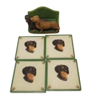 Dachshund Coasters Holder Set - 5 pieces Dachshunds Black an Brown with Green