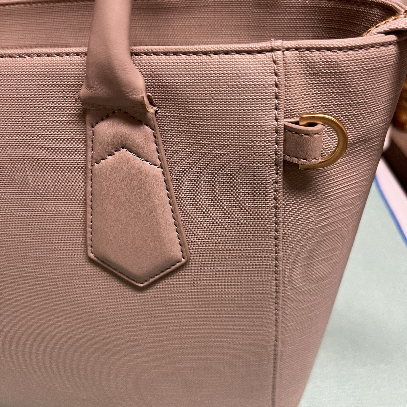 This Dagne Dover tote is a stylish and functional must-have! The bleecker blush color is gorgeous, and the gold hardware adds a luxe touch. Love the laptop pocket and multiple interior compartments—so practical for work or travel. The handles have minor wear, but it doesn’t impact use at all. Such a great find!