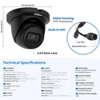 Product Description 4MP IR Fixed-focal Eyeball WizSense Network Camera > 4-MP 1/2.9" CMOS image sensor, low luminance, and high definition image. > Outputs max. 4 MP (2688 × 1520) 20 fps, and supports 2560 × 1440 25/30 fps. > H.265 codec, high compression rate, ultra-low bit rate. > Built-in IR LED, and the max. illumination distance is 30 m. > ROI, SMART H.264 +/H.265+, flexible coding, applicable to various bandwidth and storage environments. > Rotation mode, WDR, 3D NR, HLC, BLC, digital watermarking, applicable to various monitoring scenes. > Intelligent monitoring: Intrusion, tripwire (the two functions support the classification and accurate detection of vehicle and human) > Supports max. 256 G Micro SD card; built in MIC. > 12 VDC/PoE power supply. > IP67 protection. > SMD Plus. Camera Image Sensor 1/2.9" CMOS Max. Resolution 2688 (H) × 1520 (V) ROM 128 MB RAM 128 MB Scanning System Progressive Electronic Shutter Speed Auto/Manual 1/3 s–1/100,000 s Min. Illumination 0.006 lux F1.6 (Color, 30IRE) 0.0006 lux F1.6 (B/W, 30IRE) 0 lux (Illuminator on) S/N Ratio >56 dB Illumination Distance 30 m (98.43 ft) (IR LED) Illuminator On/Off Control Auto; manual Illuminator Number 1 (IR LED) Pan/Tilt/Rotation Range Pan: 0°–360° Tilt: 0°–78° Rotation: 0°–360° Lens Lens Type Fixed-focal Lens Mount M12 Focal Length 2.8 mm; 3.6 mm Max. Aperture F1.6 Field of View 2.8 mm: H: 95°; V: 52°; D: 114° 3.6 mm: H: 78°; V: 41°; D: 94° Iris Control Fixed Close Focus Distance 2.8 mm: 0.9 m (2.95 ft) 3.6 mm: 1.6 m (5.25 ft) DORI Distance Lens Detect Observe Recognize Identify 2.8 mm 63.6 m (208.66 ft) 25.4 m (83.33 ft) 12.7 m (41.67 ft) 6.4 m (20.99 ft) 3.6 mm 85.4 m (280.18 ft) 34.2 m (112.20 ft) 17.1 m (56.10 ft) 8.5 m (27.89 ft) DORI (Detect, Observe, Recognize, Identify) is a standard system (EN-62676-4) for defining the ability of a person viewing the video to distinguish persons or objects within a covered area. The numbers in this table do not reflect intelligent function distances. For intelligent function distances, refer to installation and commissioning manual/project design tool. Intelligence IVS (Perimeter Protection) Intrusion, tripwire (the two functions support the classification and accurate detection of vehicle and human) Smart Search Work together with Smart NVR to perform refine intelligent search, event extraction and merging to event videos Video Video Compression H.264H; H.265; H.264; H.264B; MJPEG (Only supported by the sub stream) Smart Codec Smart H.265+; Smart H.264+ Video Frame Rate Main stream: 2688 × 1520 (1–20 fps)/2560 × 1440 (1–25/30 fps) Sub stream: 704 × 576 (1–25 fps)/704 × 480 (1–30 fps) *The values above are the max. frame rates of each stream; for multiple streams, the values will be subjected to the total encoding capacity. Stream Capability 2 streams Resolution 4M (2688 × 1520); 4M (2560 × 1440); 3M (2304 × 1296); 1080p (1920 × 1080); 1.3M (1280 × 960); 720p (1280 × 720); D1 (704 × 576/704 × 480); VGA (640 × 480); CIF (352 × 288/352 × 240) Bit Rate Control CBR/VBR Video Bit Rate H.264: 32 kbps–6144 kbps H.265: 12 kbps–6144 kbps Day/Night Auto (ICR)/Color/B/W BLC Yes HLC Yes WDR 120 dB White Balance Auto; natural; street lamp; outdoor; manual; regional custom Gain Control Auto; manual Noise Reduction 3D NR Motion Detection OFF/ON (4 areas, rectangular) Region of Interest (RoI) Yes (4 areas) Image Rotation 0°/90°/180°/270°(Support 90°/270° with 2688 × 1520 resolution and lower) Mirror Yes Privacy Masking 4 areas Audio Built-in MIC Yes Audio Compression G.711a; G.711Mu; PCM; G.726 Alarm Alarm Event No SD card; SD card full; SD card error; network disconnecton; IP conflict; illegal access; moton detecton; video tampering; tripwire; intrusion; SMD; voltage detecton; security excepton Network Network Port RJ-45 (10/100 Base-T) SDK and API Yes Network Protocol IPv4; IPv6; HTTP; TCP; UDP; ARP; RTP; RTSP; RTCP; RTMP; SMTP; FTP; SFTP; DHCP; DNS; DDNS; NTP; Multicast; ICMP; IGMP; P2P Interoperability ONVIF (Profile S/Profile G/Profile T); CGI User/Host 6 (Total bandwidth: 36 M) Storage FTP; SFTP; Micro SD card (support max. 256 GB) Browser IE Chrome Firefox Management Software DSS; DMSS Mobile Client iOS; Android Cyber Security Configuration encryption;Trusted execution;Digest;Security logs;WSSE;Account lockout;syslog;Video encryption;802.1x;IP/MAC filtering;HTTPS;Trusted upgrade;Trusted boot;Generation and importing of X.509 certification Certification Certifications CE-LVD: EN62368-1; CE-EMC: Electromagnetic Compatibility Directive 2014/30/EU; FCC: 47 CFR FCC Part 15, Subpart B; UL/CUL: UL62368-1 & CAN/CSA C22.2 No. 62368-1-14 Power Power Supply 12 VDC/PoE (802.3af) Power Consumption Basic: 2.5 W (12 VDC); 3.3 W (PoE); Max. (ICR + H.265 + max. resolution + main stream + IR intensity + WDR + IVS): 4.2 W (12 VDC); 5.1 W (PoE) Environment Operating Temperature –40 °C to +60 °C (–40 °F to +140 °F) Operating Humidity ≤95% Storage Temperature –40 °C to +60 °C (–40 °F to +140 °F) Protection IP67 Structure Casing Material Inner core: Metal Cover: Metal Decoration ring: Plastic Product Dimensions 99.1 mm × Φ121.9 mm (3.90" × Φ4.80") Net Weight 0.48 kg (1.06 lb) Gross Weight 0.68 kg (1.5 lb) Shipping & Handling: Warranty & Return Policy: Feedback & About Us: About Customs duty/Tax: 1. Item will be shipped out within 5 business days after the payment. Please check and make sure your address is correct before payment. (In order to make sure you can receive the items successfully, please provide your phone number as well.) 2. The items will be shipped via Post Office Airmail. It usually takes around 2 to 3 weeks to United Stated, United Kingdom, Australia, Canada and some European countries. But for other countries, it may need 4-6 weeks to deliver the parcel. It may take longer time if there is abnormal weather condition or customs control issue. Please kindly contact us for refund or assistance if the item doesn