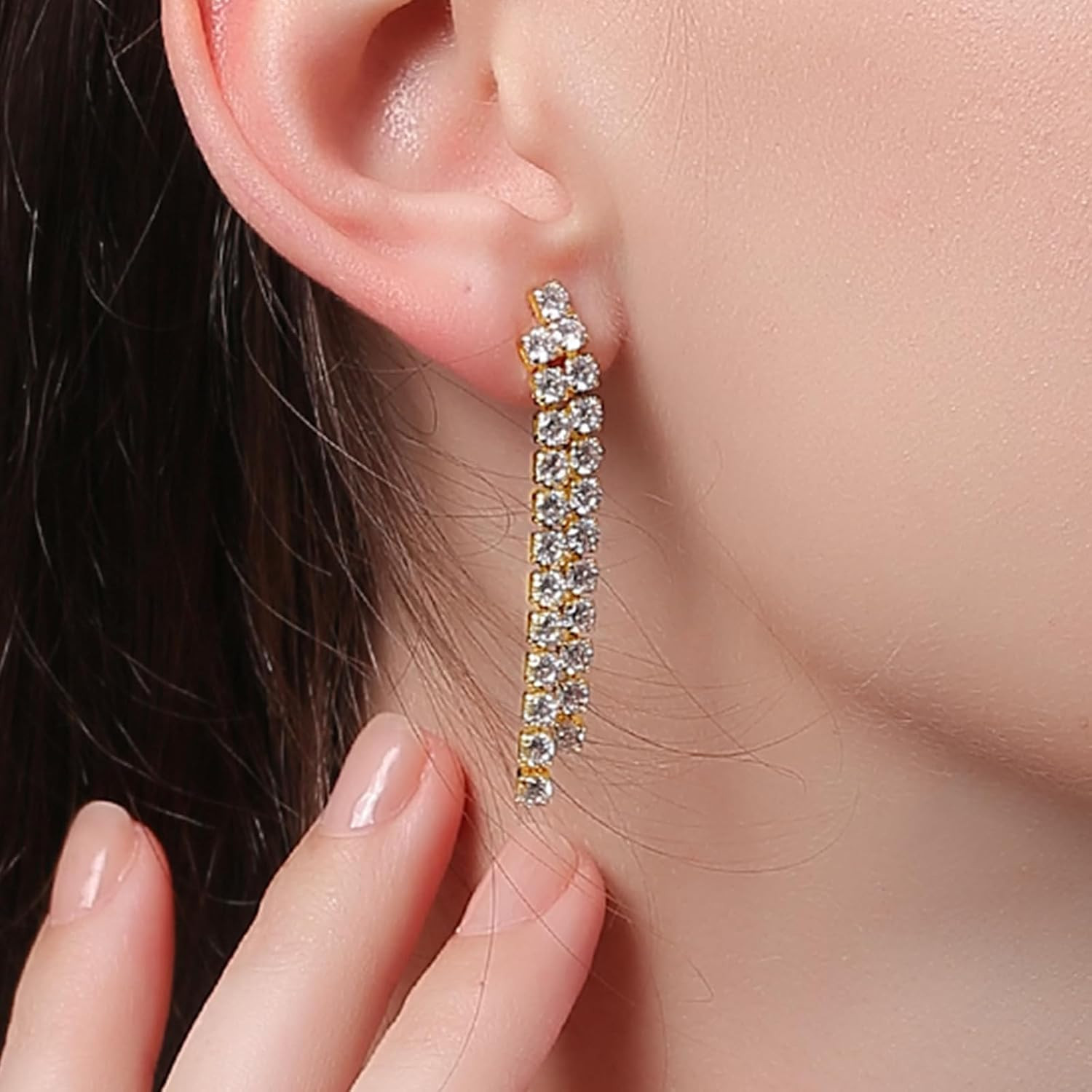 Triple Heart Dangling Diamond Stud Earrings for Women Love Drop Design