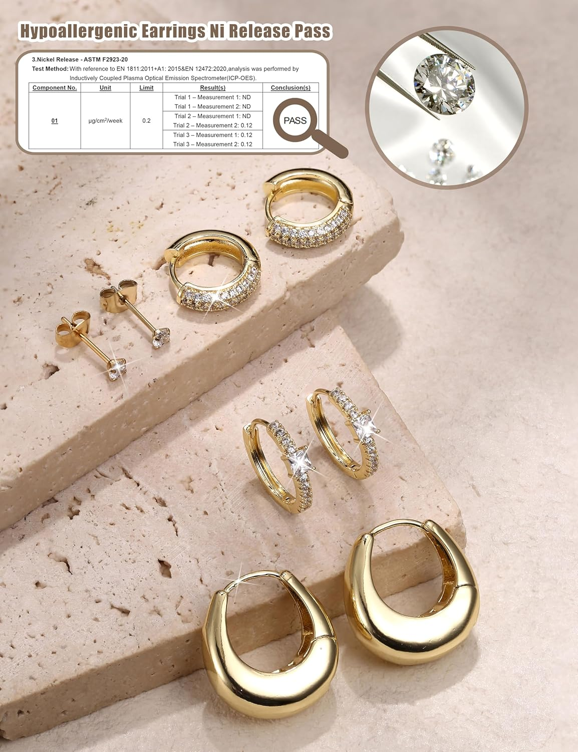 These small gold hoop earrings are absolutely stunning! The 14K gold plating gives them a luxurious shine, and the chunky huggie design is both trendy and comfortable. I love how lightweight they are—perfect for all-day wear without irritation. The hinged closure stays secure, and they look amazing stacked or worn alone. A must-have for anyone who loves dainty yet statement jewelry!
