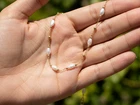 Dainty Baroque Pearl Bracelet | Gold Plated Beaded Station Chain | Handmade Elegant Minimalist Adjustable Jewelry This incredibly sophisticated piece is a delicate station chain bracelet featuring small, slightly irregular Baroque pearl beads interspersed with tiny, smooth gold-toned metal beads along a fine gold-toned chain. The natural, organic shape of the pearls adds a modern, luxurious, and distinctly minimalist aesthetic, perfect for an elevated daily look or formal wear. This meticulously handcrafted accessory is ideal for layering or wearing solo, adding a stylish, feminine touch of subtle sophistication and high-quality shine that beautifully enhances your wrist. ✅ Made from premium quality brass metal, plated according to its color tone — gold-plated for gold color, silver-plated for silver tone. ✅ Designed using artificial stones and decorative materials for a luxurious yet affordable look. ✅ Secured with a sturdy lobster clasp and an adjustable chain for comfortable wear and perfect sizing. ✅ Nickel-free, lead-free, and skin-friendly — safe for all-day wear. ✅ Perfect for daily wear, festive occasions, parties, and gifting. ✅ Carefully handcrafted with detailed finishing for long-lasting shine. ✅ Adjustable design ensures comfort and perfect fit for all wrist sizes. ✅ Available in custom sizes on request. ✅ Can be made as a matching jewelry set — Bracelet, Anklet and Earrings. ✅ 📩 Contact us to place a set order and get exclusive discounted pricing. Adorn your wrist with this stunning bracelet to instantly add a touch of charming elegance, subtle sparkle, and sophistication to any look. baroque pearl bracelet, pearl bracelet, beaded bracelet, chain bracelet, minimalist bracelet, dainty bracelet, station bracelet, gold plated bracelet, bracelet for women, handmade bracelet, brass bracelet, adjustable bracelet, trendy bracelet, designer bracelet, elegant jewelry