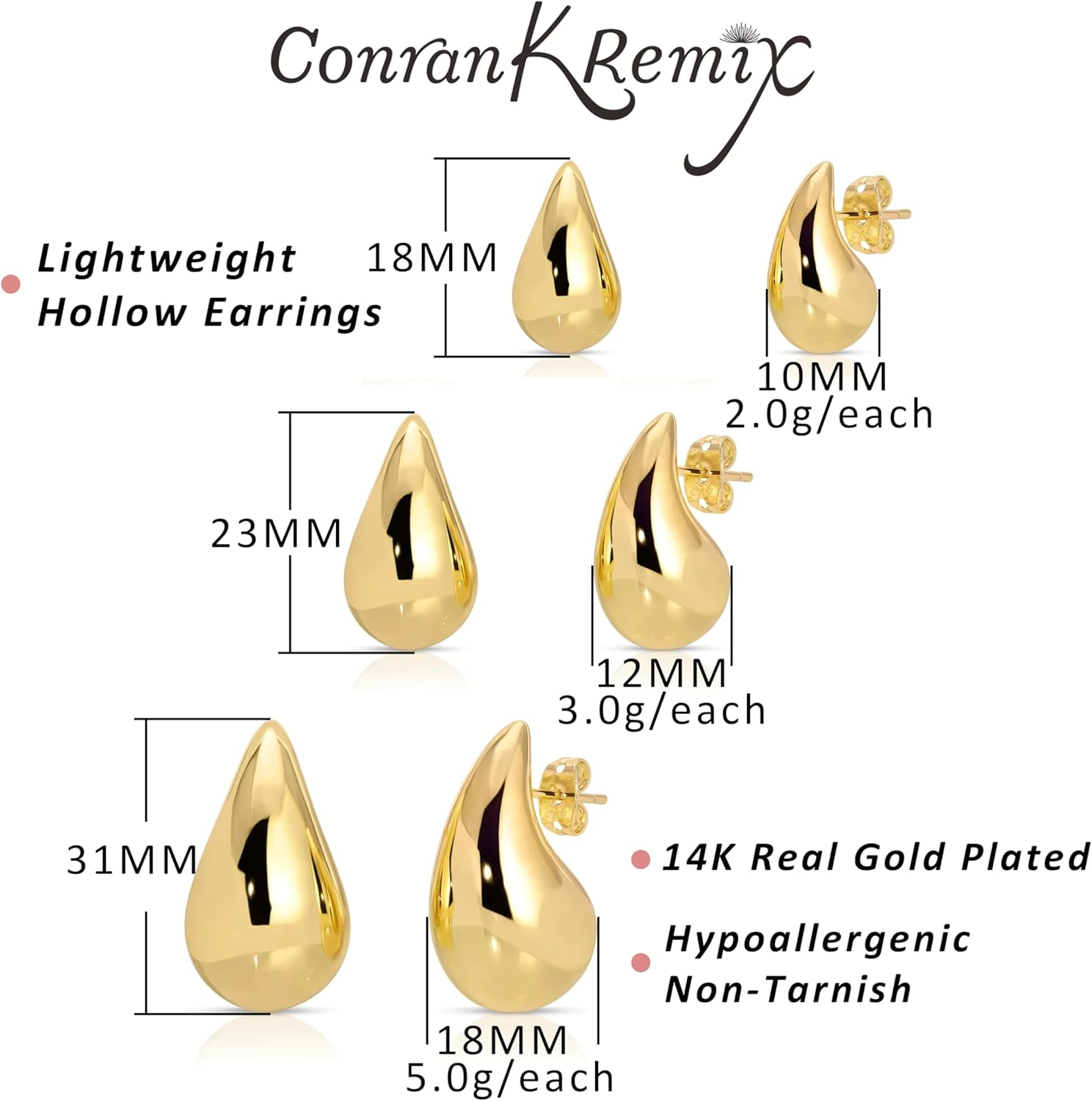 Store New Arrivals Add to Favorite View Feedback Contact Fast deliveries to the customer's home Quality customer service John Make the customers happy! Small Teardrop Gold Chunky Earrings for Women,Thick Hoop Hypoallergenic Earring Water Drop Earring Dupes for Women 18MM Description Product Description CONRAN KREMIX Earrings Add to Cart Add to Cart Add to Cart Add to Cart Add to Cart Customer Reviews 4.7 out of 5 stars 131 4.6 out of 5 stars 221 4.3 out of 5 stars 174 4.2 out of 5 stars 2,049 4.3 out of 5 stars 229 Price $7.99 $ 7 . 99 $12.99 $ 12 . 99 $12.99 $ 12 . 99 $12.97 $ 12 . 97 $13.99 $ 13 . 99 Brass ✔ ✘ ✘ ✘ ✔ Stainless Steel ✘ ✔ ✔ ✔ ✘ Real Gold Filled ✔ ✔ ✔ ✔ ✔ Gold &Silver ✔ ✔ ✔ ✔ ✔ Lightweight ✔ ✔ ✔ ✔ ✔ Gem Type No Gemstone Color Gold-3Pair Set Material Brass Metal Brass Department womens ABOUT US We offer the best prices around on high quality products. Our E-store includes media such as books, movies, music and games while offering electronics, toys, sporting apparel, clothing, tools, general home, garden items and more. SHIPPING We are always working hard to ensure your package arrives as soon as possible. Please understand that some factors like weather, high postal traffic, and the performance of shipping companies are outside of our control. We offer free shipping to the lower 48 states and ship within 2 business days of payment, usually sooner. We do not accept P.O. Boxes. Please provide a physical address. For shipping outside of the continental USA, we only use eBay's Global Shipping Program. The item is shipped to KY and then sent to the rest of the world. International customers are responsible for all duties and taxes. Continue to 'check out' to calculate costs for shipping the item to your country. Messages regarding eBay's Global Shipping Program MUST be directed at eBay EXCLUSIVELY. RETURNS We offer a 30-Day Return Policy on items in which you are not completely satisfied with. You have the option of a full-refund or an exchange of the item. No returns are available on items shipped outside of the USA PAYMENT We accept PayPal. CONTACT US This page content is yet to come Please ad us to your favorite seller and visit again later Thank You CUSTOMER SATISFACTION We try our very best to make sure every customer is completely satisfied. If there's a problem, message us! We're happy to help. WE ACCEPT