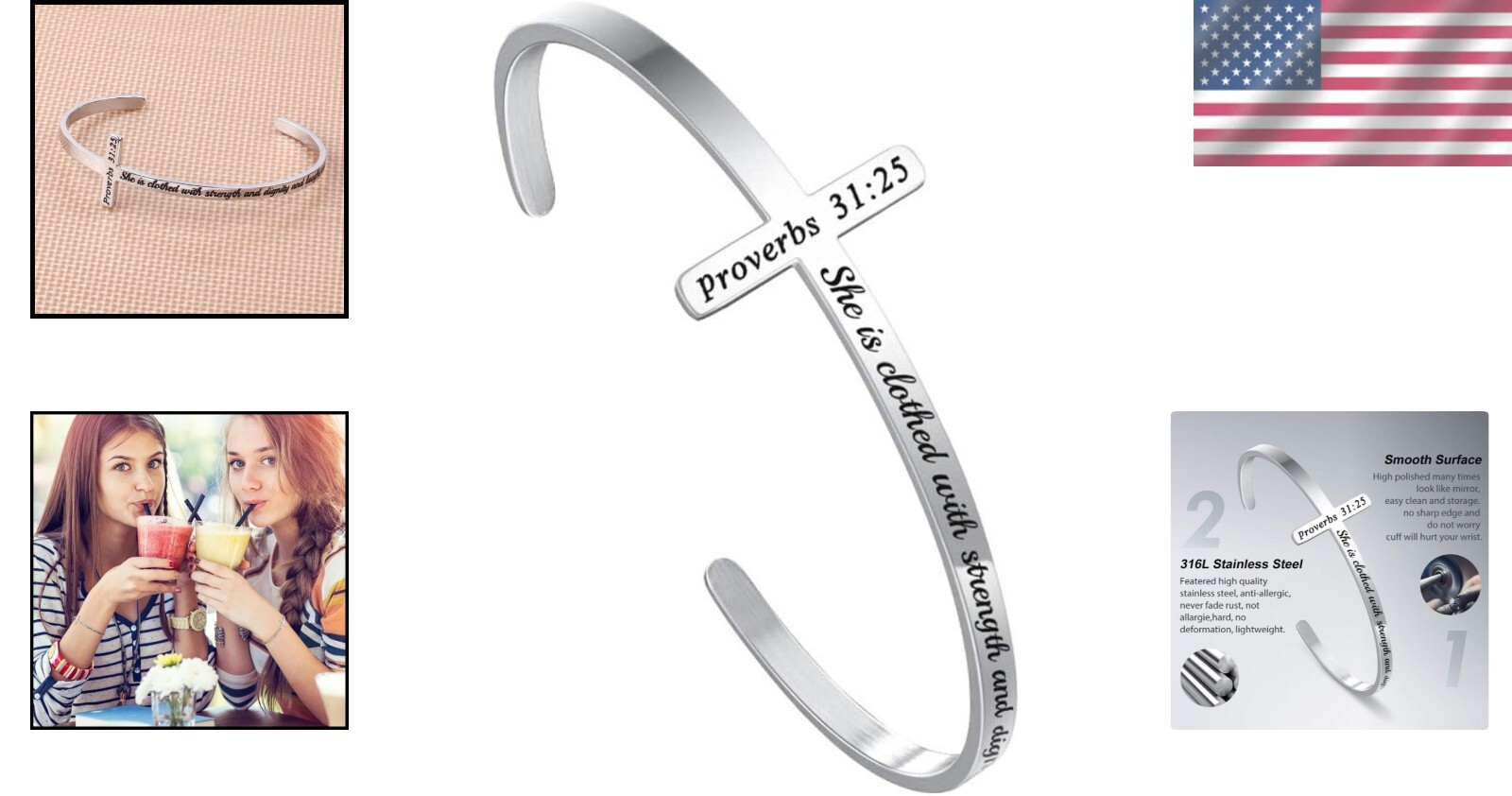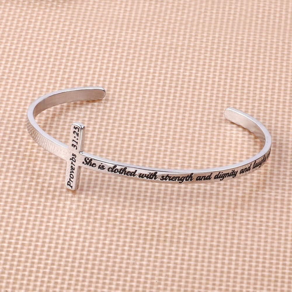 Dainty Christian Cuff Bracelet - Engraved Strength and Dignity Quote for Women ‹ › ‹ › ‹ › ‹ › ‹ › ‹ › ‹ › ‹ › ‹ › ‹ › Dainty Christian Cuff Bracelet Engraved Strength and Dignity Quote for Women This exquisite Cross Bracelet is beautifully engraved with the empowering message: "She is clothed with strength and dignity and laughs without fear of the future." Perfect as a thoughtful gift for loved ones—including friends, daughters, granddaughters, nieces, sisters, coworkers, or even yourself—this bracelet serves as an inspiring reminder of faith and resilience. Features: Engraved with an uplifting Bible verse to inspire courage and confidence. Delicate and dainty design, making it a perfect choice for any occasion. Comes beautifully packaged in a luxurious velvet bag, ideal for gifting. Crafted from 316L stainless steel, ensuring durability and a bright finish that won’t rust or tarnish. Comfortable to wear, with smooth edges to avoid wrist irritation. Dimensions: Width: 0.16" Length: 6.3" Inner Diameter: 2.6" Flexible opening cuff easily adjusts to fit any wrist size. Why Choose Our Cuff Bracelet? Embrace the beauty of faith with our Dainty Christian Cuff Bracelet. Designed for the modern woman, this bracelet not only serves as an elegant accessory but also as a daily reminder of strength and dignity. Whether celebrating a special occasion or simply showing someone you care, this bracelet is the perfect expression of love and encouragement. Enjoy peace of mind with our purchase guarantee—if you’re not completely satisfied, we offer free exchanges or a full refund within 90 days. Contact us anytime for support! Shipping Free & Fast Shipping - We offer free shipping to most of the USA with a normal delivery time of 3-7 days. However, due to the current situation, additional delivery time (up to 3 weeks) may be required for some items. Alternative Carriers - We may use alternative carriers (e.g. USPS, FedEx, UPS, etc.) to ensure your package arrives safely and on time. Due to the use of multiple carriers, we are unable to provide a tracking number automatically. Handling Time - Orders are processed and shipped within 1-2 business days of receiving cleared payment. Shipping Restrictions - Shipping to Alaska, Hawaii, Puerto Rico, Guam, and other US territories may incur shipping charges or delivery restrictions. Please contact us before ordering, or your order can be refunded/cancelled. State Restrictions - There may be restrictions based on your state of purchase. For example, certain items may not be shipped to California due to state regulations. Contact for Tracking Updates - If you require tracking updates or have any concerns about the delivery of your order, please feel free to contact us, and we will be happy to assist you. Return 30-Day Hassle-Free Returns - We want you to be completely satisfied with your purchase. If you are not, you can return the item within 30 days of receiving it for a full refund or exchange. Easy Return Process - To start a return, simply contact us and we will provide you with a prepaid return shipping label and detailed instructions. Restocking Fee - There are no restocking fees for returns. However, the buyer is responsible for return shipping costs if the return is not due to a seller's error. Refund Processing Time - Refunds will be processed within 5 business days of receiving the returned item in its condition. Payment We accept all major credit cards, PayPal, and Apple Pay for your convenience. Your payment information is secure and encrypted to ensure a safe and seamless transaction. Please complete your payment within 3 days of purchase to avoid any delays in shipping. Feedback Your feedback is extremely important to us. We strive to provide the best products and customer service possible. If you are satisfied with your purchase, please take a moment to leave us a positive review. If you have any concerns or issues with your order, please contact us before leaving negative feedback. We are committed to resolving any problems and ensuring your satisfaction. Contact Us If you have any questions or concerns, please feel free to out to our customer support team. You can contact us through the eBay messaging system. We are available Monday to Friday, 9:00 am to 5:00 pm EST, and we will do our best to respond to your inquiry within 24 hours. Buy it now and enjoy a pleasant shopping experience! Metal Purity: 316L Unit Quantity: 1 Style: Bangle,Cuff Material: Metal,Stainless Steel Secondary Stone: No Stone Main Stone Treatment: Not Enhanced Occasion: Birthday,Christmas,Graduation,Mother's Day,Valentine's Day,Baptism,Confirmation Features: Engraved,Nickel-Free Type: Bracelet Color: Silver Main Stone Color: No Stone Metal: Stainless Steel Main Stone: No Stone Charm Type: No Charm Shape: Rectangle Number of Gemstones: 0 Main Stone Shape: No Stone Main Stone Creation: Natural Setting Style: No Setting Closure: S Hook Base Metal: No Base Metal Chain Type: Box Chain Era: Undated Unit Type: Unit