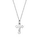 Dainty sterling silver crucifix pendant which could also be used as a charm.Sterling silver (.925) pendant. Sterling silver (.925) diamond cut curb chain. The cross pendant measures 20mm (h) x 12mm (w). Gift box included.