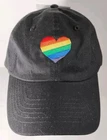 This is a unisex hat featuring a rainbow-striped pattern with a heart embroidered design, symbolizing LGBTQ+ pride. The hat is adjustable for a comfortable fit and comes in black color. The brand is Dalix, and the theme is Pride. See Photos 📸