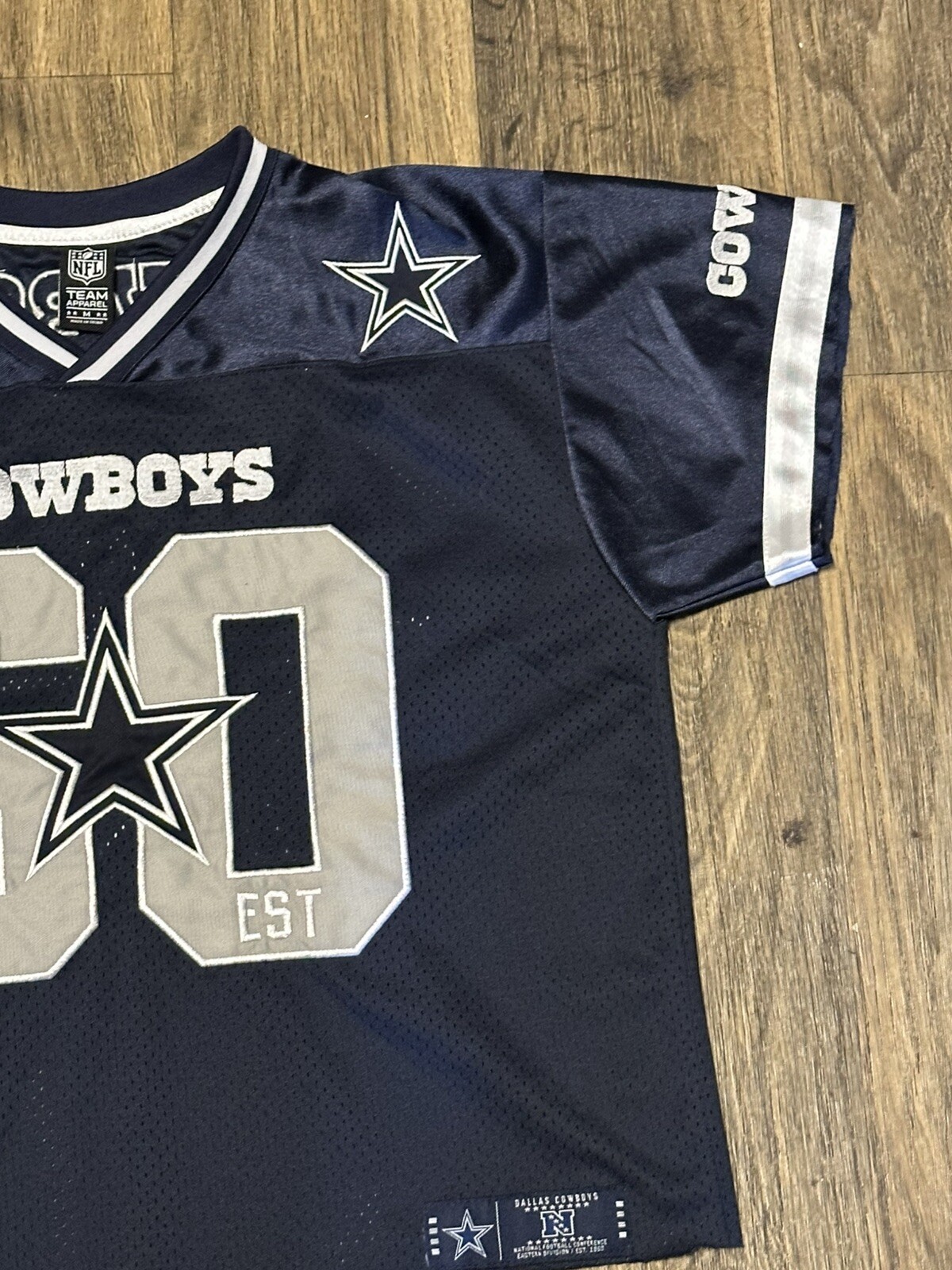 Show your support for the Dallas Cowboys with this official NFL jersey. Made from high-quality materials, this jersey is perfect for any football fan. The jersey features the iconic Cowboys logo and is designed to fit comfortably. It is a must-have for any true fan of the team. This jersey is a size medium and is perfect for wearing to games or displaying in your home. It is an authentic NFL product and is made to last. Whether you are a die-hard fan or just love football, this jersey is a great addition to your collection.