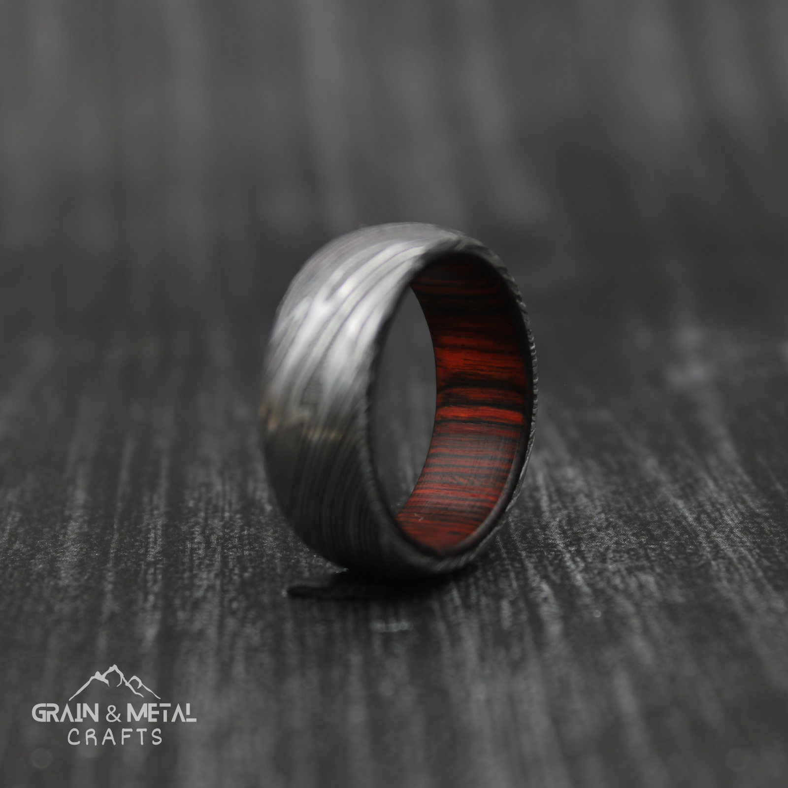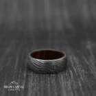 The interior of this damascus steel ring is lined with a hardwood sleeve. Hardwood used in this ring is 100% natural and skin friendly. If you want a ring that will stand out, this band is your one stop shop because it offers a unique but simplistic aesthetic. The appealing design has a sleek polished finish. Authentic damascus steel ring made with the mixture of 1095 and 15n20 which is a type of metal that is known for its strength and durability. The rings have a hammered finish, which gives them a rustic look. Every single band in my shop is 100% handmade, made one by one and i don’t use any machine to make the rings. Weight of ring: 6-9 grams. The width of the ring in picture is 8mm. Package includes: 1x Ring in a poly bag. 1 x Ring Box. Care Instructions: The wood is well stabilized, but it is advised to avoid prolonged submersion in water, such as for bathing, swimming, or doing dishes. The ring will last a lifetime if cared for properly. Please be aware that due to the handcrafted nature of damascus rings, variations in color, shade, and pattern can be slightly different. Each ring is meticulously made to order, resulting in unique characteristics that make every piece one-of-a-kind. As such, no two rings can be identical, adding to the charm and individuality of each creation. Damascus Whiskey Barrel Steel Ring, Man Wood Wedding Ring, Man Promise Ring, damascus steel ring, Man Ring, engagement ring, man wedding band,Damascus Ring, Wedding Gift, Unique Ring, Jewelry Ring, Gift for Her, Birthday Gift, Wood Wedding Ring, Man Promise Ring, damascus steel ring, engagement ring, Men Ring