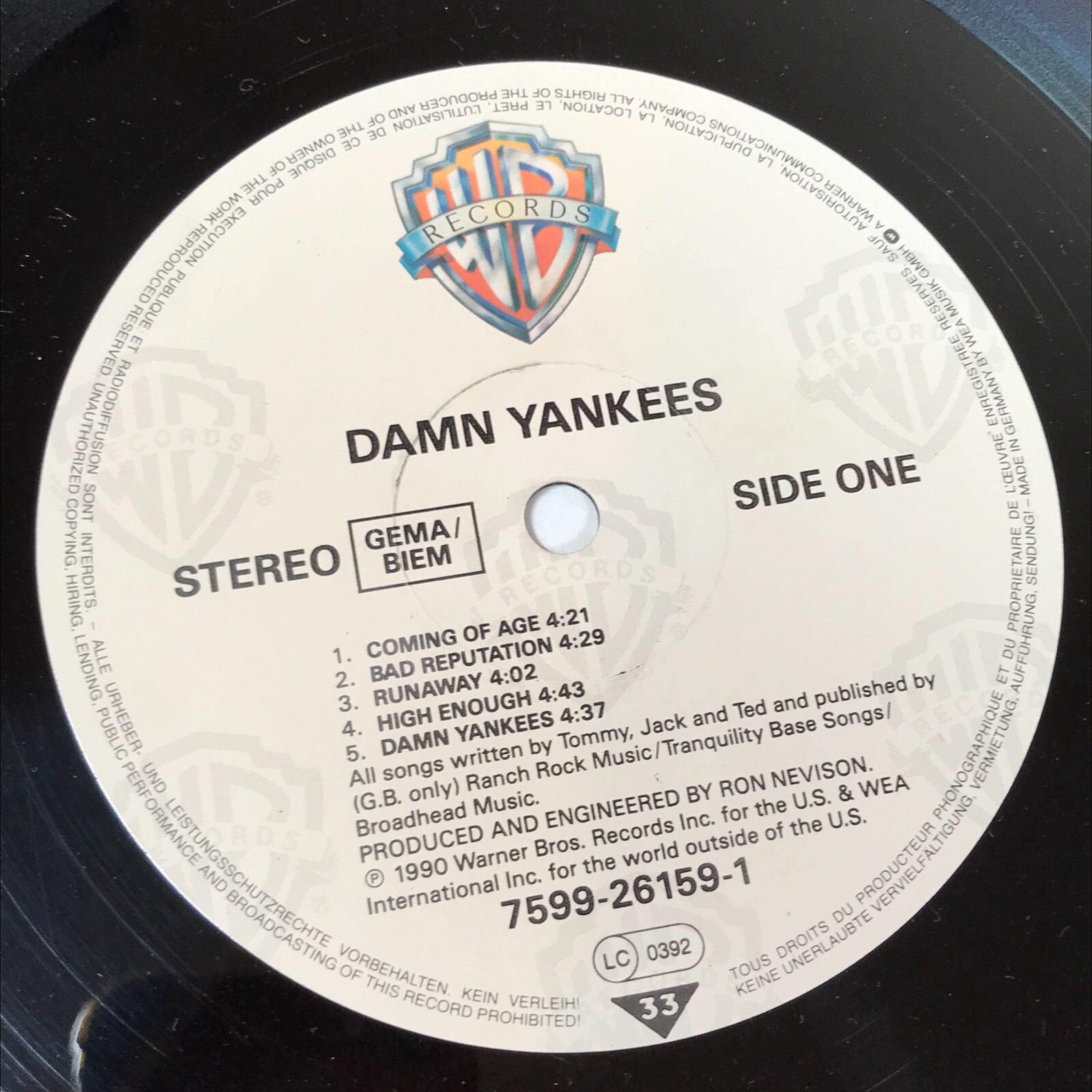 DAMN YANKEES Damn Yankees - 1990 German vinyl LP, the first album from Ted Nugent's rock supergroup, 7599-26159-1 Coming Of Age Bad Reputation Runaway High Enough Damn Yankees Come Again Mystified Rock City Tell Me How You Want It Piledriver Record Condition : Excellent Sleeve : Excellent Please check out our other items !