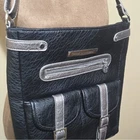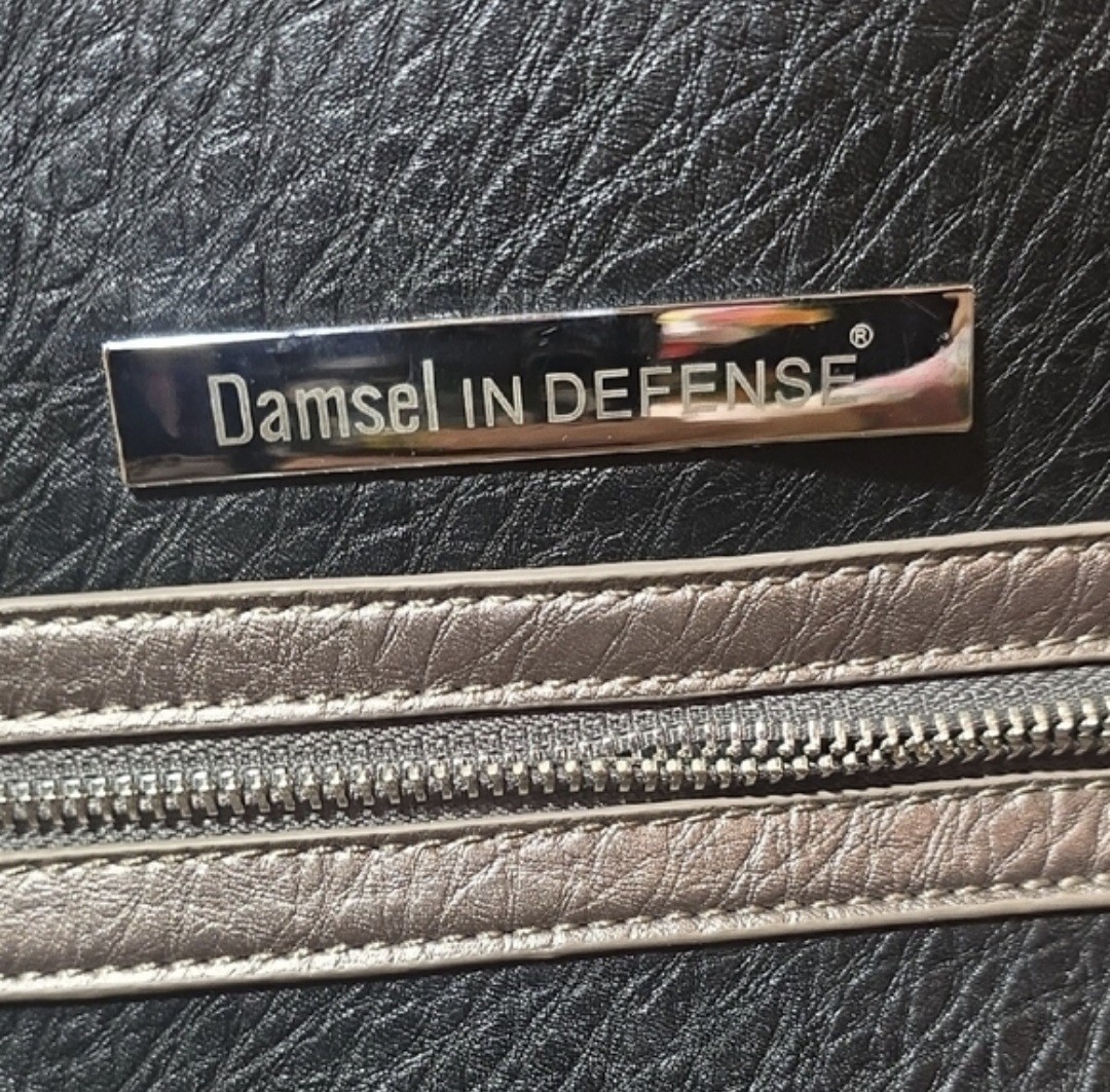 The Damsel in Defense Side Sadie Black Conceal CCW Crossbody Handbag Purse is a medium-sized rectangular handbag made of faux leather in a solid black color. It features a black handle/strap, a zipper accent, and a detachable strap for added versatility. This stylish crossbody purse is designed for women and includes various accessories to enhance its functionality. Perfect for everyday use or special occasions, this handbag combines fashion with practicality for the modern woman on the go.