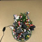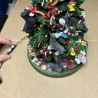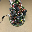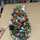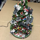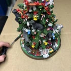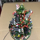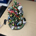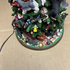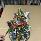 The item has a lot of signs of wear and damage to it. The ears and various parts are broken a lot in various places. The item doesn’t come with a star and the top light doesn’t light up. See photos to see the item.
