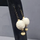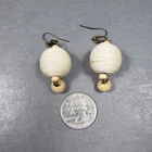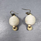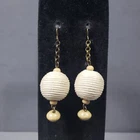 Up for sale is a set of dangle beaded earrings. They are gold tone in color with wooden and fabric beads . They are in good pre owned condition! Please view all posted pictures as they are part of the description. If you have any questions please ask. Please check out my store for more great deals that are listed every day!!