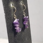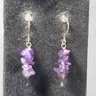 Up for sale is a set of dangle earrings. They are silver tone in color with purple stones . They are in good pre owned condition! Please view all posted pictures as they are part of the description. If you have any questions please ask. Please check out my store for more great deals that are listed every day!!