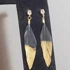 Up for sale is a set of feather earrings. They are gold tone and black in color. They are in good pre owned condition! Please view all posted pictures as they are part of the description. If you have any questions please ask. Please check out my store for more great deals that are listed every day!!
