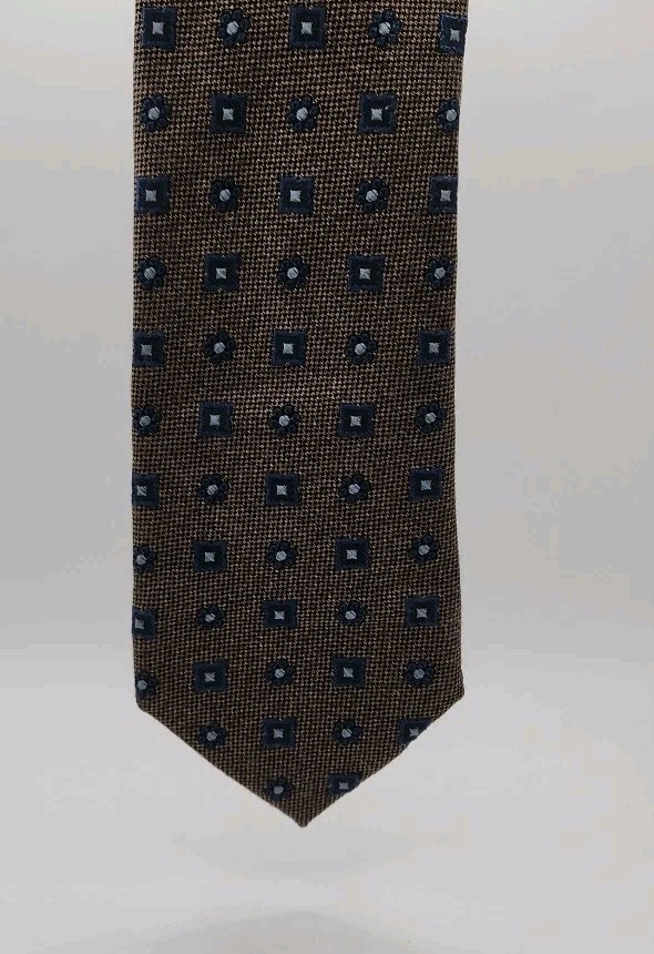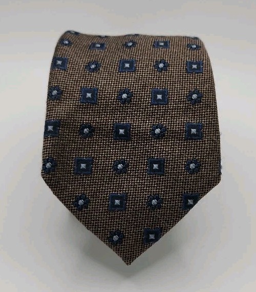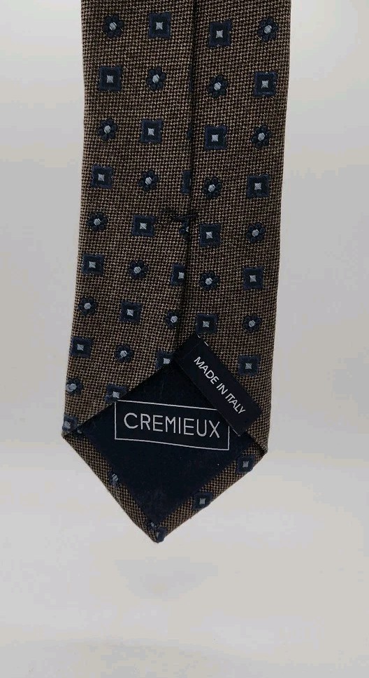 The Daniel Cremieux Men's Brown Tie is a classic and stylish accessory, made in Italy with a silk blend fabric. Featuring a geometric floral pattern in navy blue, this slim tie is 61" in length and 3" in width, making it a versatile addition to any man's wardrobe. The cool-toned accents and vintage style add a touch of sophistication, perfect for adding a pop of color to a classic outfit. Ideal for a timeless and polished look, this tie is sure to elevate any ensemble with its quality and elegance.