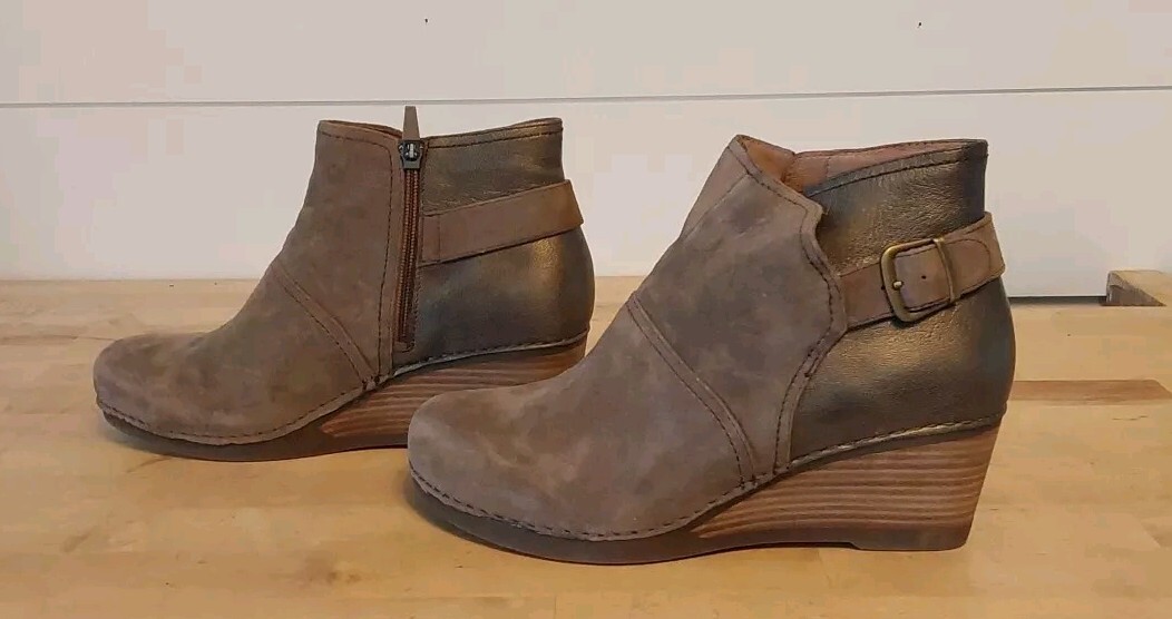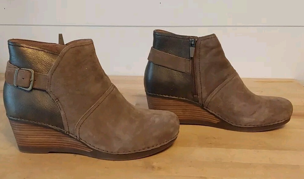 NWOB Easy-wearing fashion. The Dansko Women's Shirley Boots combine rustic style with easy-wearing function suitable for everyday wear. Their leather uppers feature a 3M Scotchgard protector that resists the stains you'll undoubtedly encounter throughout the course of your day. The cushioned footbed with arch support will deliver the comfort you need when you're strolling between booths at the farmer's market or exploring quirky shops downtown. DETAILS Rustic style meets easy-wearing function in these boots Durable leather uppers with 3M Scotchgard finish Removable footbeds provides arch support and padding to feet Convenient side zip closure for easy on and off DANSKO Women's Shirley Suede Leather Bootie Wedges 41 US 10.5 11 Boots 1252151200