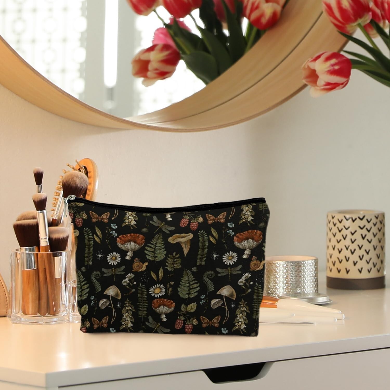 Dark Forest Cottagecore Mushroom Makeup Bag, Mushroom Gifts for Women, Forest Cosmetic Bags Toiletry Bag for Women, Gifts for Mushroom Lovers, Mushroom Stuff, Mushroom Accessories for Women Product Details Color: boho mushroom - 2 Brand: RYYCDOI MPN: Does not apply UPC: Does not apply EAN: Does not apply Product Dimensions: 10 x 7.5 x 0.3 inches Item Weight: 1.76 ounces Department: Unisex Adult Manufacturer: RYYCDOI Country of Origin: China Size and Portability: Measuring 10 x 7.5 inches, this makeup bag is sized for effortlessly organizing all your beauty essentials, from nail clippers to tweezers. Superior Quality: Constructed from linen and featuring a smooth zipper closure, our canvas makeup bag blends elegance with durability. The interior is lined with waterproof canvas, offering both high quality and practicality. Stylish and Fun: Elevate your daily routine with our cosmetic bags, which showcases vibrant and chic designs that enhance your style and add a touch of fun to your regimen. Great Gift Option: Offered in an array of styles and inspirational messages, our canvas makeup pouches are perfect for any occasion, be it birthdays, holidays, or special celebrations. They make treasured keepsakes for your loved ones. Exceptional Craftsmanship:Our skilled designers meticulously create each makeup bag with unique and delightful patterns. Effortlessly display your individuality with our carefully curated selection of designs. Step into the realm of our makeup bags excellence! Made from luxurious linen and featuring a sleek zipper and waterproof canvas lining, this bag seamlessly combines style with durability. Our collection boasts a range of vibrant and chic designs, each adding a playful flair to your everyday routine. Whether you prefer bold patterns or inspirational messages, there's a bag to suit every taste and occasion. Plus, with each cosmetic bag being uniquely crafted, you can showcase your individuality with pride. Elevate your beauty game with one of our fun and fabulous makeup bags. Treat yourself or surprise a loved one with the perfect gift that's both practical and stylish. Experience the difference for yourself and grab yours today!
