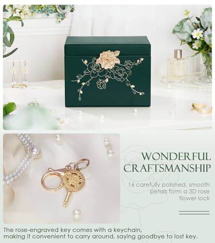 Return Policy Fast Delivery Trusted seller Jewelry Box with Lock for Girls: Jewelry Organizer for Dresser - 3-Drawer Earrings Storage Girls Women Gift (Dark Green) Product Description Secure Storage with Elegant Leather: A jewelry box that locks, keeping your treasures secure with a rose lock and beautiful faux leather that adds a touch of luxury to any room. Spacious Drawers for Jewelry: With 3 layers and 3 drawers, this jewelry organizer holds earrings, studs, necklaces, chains, pendants, rings, bracelets, watches, sunglasses, glasses, and more, all in a sturdy and elegant case. Leather-Like Design with Lock: The jewelry box's faux leather-inspired design with golden rose accents and a lock ensures both style and security for your treasures. Versatile Storage for Daily Use: Suitable for use in dresser,vanity, counter,desk,nightstand etc. This jewelry box offers a practical storage solution that's also a beautiful addition to your space. Gift-Worthy for All Occasions: This jewelry box is a perfect gift for the ladies in your life, such ase wife, daughters, granddaughters and more, holding a special place for birthdays, Christmas, Valentines' Day, wedding, etc. Shipping Returns Payment Shipping Shipping is FREE to all addresses other than APO/PO boxes in the lower 48 states. All our stock ships from US-based warehouses. Shipped via USPS or UPS (depending on location and package weight) Unless stated otherwise, all orders will ship within 24-72 hours of your payment being processed. Check our feedback to see the great reviews of FAST shipping we offer. Returns Seller does not accept returns Payment We currently accept payment via eBay managed payments only. Once payment is cleared, we will dispatch your shipment within 1-3 business days. Please refer to the "Shipping" tab for more information regarding shipping speed to your destination.