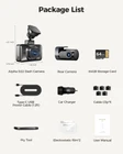 Dual Channel Dash Camera: 1. Front: 4K(2880*2160P); 2. Front and rear:2K(2560*1440P)+1080P. D22 car camera captures incredibly clear and detailed footage of your travels day and night. Accident Lock: D22 dash camera for car features high-sensitivity G-sensor system. driving recorder will auto lock and save the emergency video when a collision is detected. Built-in WiFi: You could connect car dashcam to your phone seamlessly. It's easy to review, download and share videos in app. Free 64GB Card & Loop Recording: D22 dash camera won't lose any crucial evidence with loop recording function, overwriting the oldest unprotected files when the SD card is about full. (A free 64GB card is included in the package) Smart Voice Control: Alpha front and rear dash camera supports your spoken commands. You could voice control it to lock the video, take picture, turn on/off WiFi and more. 2 Parking Modes: 1. Collision detection parking mode, G-sensor could detect collision and auto lock the video. 2. Time-lapse parking mode, this driving recorder could record continuously for 12/24/48 hours. Hassle-free Warranty: dashboard camera is covered by a 12-month warranty and lifetime technical supports. Please feel free to contact us with any problems.