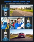 Excellent WDR technology and clearer night vision: The interior facing car dashcam is designed with 4 infrared LED lights, which can accurately and clearly capture important shots in low light conditions. Excellent HDR technology allows cameras to create balanced images and lenses by adjusting exposure under any lighting conditions, achieving optimal performance. Triple dash cam: This 3-channel dash cam is equipped with a 170 degree wide-angle front camera, a 150 ° cab, and a 150 ° waterproof rear camera, reducing visual blind spots. The screen is made of IPS panels, allowing you to see clear images from any angle without any blurring. Loop recording: The loop recording function of the dash cam allows newly recorded videos to automatically overwrite the oldest video when the storage limit is reached. Videos can be recorded at intervals of 1 or 3 minutes. The car camera is equipped with a 32GB SD card, so you don't need to purchase it separately. Easy to install and operate: The in car driving recorder is plug and play, very convenient. Installing the 3-channel dash cam on the windshield is very simple, making the installation process very easy. Easy to understand display and user-friendly button settings make it easy for you to use. G-sensor and parking monitor: The car's built-in G-sensor dashcam activates emergency recording and locks the recorded video when it detects sudden vibrations or collisions while your car is stationary. 24H Parking Monitor:Loop Recording allows overwriting the oldest files to ensure continuous recording when the memory card reaches full. G-sensor detects a sudden collision and locks the collision footage. Parking monitor enables the dash cam front and rear camera to start recording a locked video for about 20s once encounters a collision during parking. An extra ACC hardwire kit is needed for this function. New driving recorder with three lenses and three recorders, front, interior, and rear panoramic dual lens reverse camera Driving recorder 1080P in car camera dual recording parking monitoring infrared night vision ultra wide angle 170