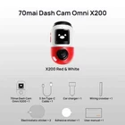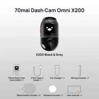 70mai Dash Cam Omni X200 360° Full View Built-in GPS ADAS 70mai Camera Car DVR X200 24H Parking Monitor eMMC Storage AI Motion Detection *In above options, there are only 70mai X200 or 70mai X200 with Hardwire Kit UP03(Not 4G Hardwire Kit UP04)!! *70mai 4G Hardwire Kit UP04 needs to be bought separately!! The First-ever 360° Dash Cam A 340° swivel design plus a 140° FOV are stepping up to a 360° no blind spot full view with minimized distortion. The Omni dash cam delivers best in-class night performance givens its F1.5 large aperature and PureCel®Plus-S HDR technology. Equipped with AI motion detection and collision detection, it is designed to precisely capture any suspiciousness around the vehicle, significantly maximize surveillance capability. The upgraded ADAS also helps you more intelligently avoid road safety-related accidents. Patented 360° Full View Design "2-Phase Stepping Motors" step up to a 340° swivel design, a 140° FOV featured in to avoid image distortions, all in a solid one, resulting in the industry's first real 360° no blind spot full view dash cam. Flexible shooting takes advantage of a comprehensive coverage around your car while your car is parked. If you want interior shots or some particular angle shots outside the car, just adjust it to your preferred shooting angle. 70mai Night Owl Vision It's equipped with PureCel®Plus-S HDR technology to deliver best-in-class low-light performance, automatically correcting exposure levels. It achieves a dynamic range of up to 120dB (vs. common 70-80dB), thus providing excellent color performance under ultra-high contrast conditions such as entering and exiting tunnels. And helps enormously elevate video quality without blinding front cars' license plates with strong headlights. Instant App Alert With the 4G hardwire kit UP04, Whenever a collision or suspicious incident appears, Omni’s parking surveillance system instant notifications via App, and you can check what's going on around your car, never miss any noteworthy events. Kind Reminder:The 70mai 4G Hardwire Kit UP04 is required. *In above options, there are only 70mai X200 or 70mai X200 with Hardwire Kit UP03(Not 4G Hardwire Kit UP04)!! *70mai 4G Hardwire Kit UP04 need to be bought in separate!! *Kindly Reminder: To enable time-lapse recording of the Dash Cam X200 if you cannot choose a 4G cable, the 70mai Hardwire Kit UP03 is required to be installed and sold separately. One-tap App Connect Save your time and more convenient. eMMC Built-in Storage With the eMMC built-in storage, you no longer need a separate memory card. It also helps you avoid common issues such as frame-skipping and memory card errors. Smart Voice Control The Omni is equipped with voice control for added convenience. By giving simple voice commands, the camera performs the corresponding actions without turning your attention away from driving. Kind Reminder: Voice control is currently available in English only. MaiX - Your Personal AI Companion 70mai's mascot, Maix the bear, now lives in the Omni! So when you interact with Omni, it reacts back via its Maix emojis, just like a companion robot! It listens to you, takes photo for you, and can even sing you a happy birthday song! Road Story Filter The RS merges live footage with speed, driving direction, real-time altitude and more with Hi-Tech sense effects. And you can post your one-minute long fancy video on your social media. 4G Connectivity* (Optional) Check remotely or send you an instant alert via phone. And real-time route tracking helps you stay informed of your car's exact location when someone else is driving it for your optimized safety. *The 70mai 4G Hardwire Kit UP04 is required. *For the 4G Hardwire Kit UP04, it is sold separately, and is not applicable to all countries. For applicable countries, please refer to the following figure. Click the link or picture to buy 70mai 4G Hardwire Kit UP04: https://www.aliexpress.com/item/32934943614.html