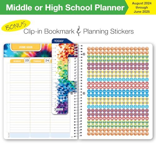 This planner is a game-changer for staying organized! The perfect size fits easily in my backpack, and the matrix layout keeps assignments and deadlines clear. Love the bonus stickers and bookmark ruler—super handy. The colorful design makes planning fun, and the dated pages from August to June are so convenient. Highly recommend for any student looking to stay on top of their schedule!
