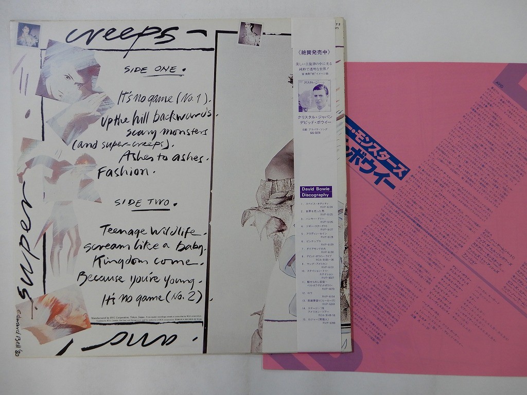 CATEGORY ROCK POP JAZZ SOUL/FUNK JAPANESE HOUSE/TECHNO LATIN BRAZIL OST HIPHOP TERESA TENG BLUES REGGAE CLASSICAL WORLD ARTIST David Bowie TITLE David Bowie Scary Monsters RCA RVP-6472 Japan VINYL LP OBI LABEL RCA FORMAT LP COVER E (Excellent) S (Stain) conerbump VINYL E+ (Excellent Plus) OBI STRIPE E (Excellent) OS (OBI Stain) fading / sun damage COMMENTS The pictures in this page show actual item which you will receive. Accessories not shown in the photo are not included. Please note that shipping rates are for single LPs. Gatefold & Double albums count as 2LPs, 2CDs Triple albums count as 3LPs, 3CDs & Box Sets are counted per LP & CD. ▶ Grading Policy All gradings are visual and very strict. ▼ Record grading S (Sealed) Record is still sealed and has never been played. M- (Mint minus) Like new. The record does not have any visible light scratches or cracks. E+ (Excellent Plus) The record has hardly visible small scratches etc. The label may have some * In effect E+ means almost faultless. We think you can find records graded E+ quite satisfactory, unless you are a collector who is determined to own a brand new record. EX (Excellent) There are some light scratches and cracks on the record (which can be felt by touch). Sometimes these slight defects may influence sound. *Although some noise is audible in quieter sections of the record, such as fade-outs, and it is especially conspicuous between tracks, it does not have a profound influence on the whole record. The label may have discolorations or ring wear. EX- (Excellent Minus) It is worse than the above, but there are no needle jumps. There is some noise. The label may have discolorations or ring wear. VG+ (Very Good Plus) It is worse than the above. But,No Needle jumping. There is some noise. The label has discolorations or ring wear. VG (Very Good ) It is worse than the above. ▼ Cover grading S (Sealed) Record is still sealed and has never been played. M- (Mint minus) Like new.The Cover does not have any lines, folds, scratches, cracks, spots, or other similar folds. E+ (Excellent Plus) The Cover has small lines / folds / scratches / cracks / spots / ring wear, or other similar faults. E (Excellent) The Cover may have light lines, folds, scratches, cracks, spots, some writing, some tape or sticker (or traces of such) and ring wear. It may be slightly dirty. E- (Excellent minus) It is worse than the above, The Cover may have light lines, folds, scratches, cracks, spots, some writing, some tape or sticker (or traces of such) and ring wear. The Cover may be dirty. VG+ (Very Good Plus) It is worse than the above,The Cover has striking folds, scratches, cracks, spots, ring wear, some writing, scotch tape, or stickers. VG (Very Good) It is worse than the above. ▼ OBI grading S (Sealed) M- (Mint minus) E+ (Excellent Plus) E (Excellent) E- (Excellent minus) VG+ (Very Good Plus) VG (Very Good) - - - - ▼ Other Abbreviations W Writing ST Stickers, tape WD Water Damage S Stain M Mold C Corner cut P Punch hole D Drill hole SP Cover Split DJ promotion copy SF Same Flip ▼ OBI Abbreviations OW OBI Writing OST OBI Stickers, tape OWD OBI Water Damage OS OBI Stain OM OBI Mold OP OBI Split - - - - - - - - - - ▼ Degree of Warping Vinyl Condition: 「Warp 1」 Vinyl Condition: 「Warp 2」 Vinyl Condition: 「Warp 3」 ▼ NOTICE All gradings are visual. Please note that we only perform lightly cleaning. An abbreviation of the country of origin is listed next to/below the label. Warps, heat damage, or chemical changes due to polyurethane sleeves and vinyl chloride records, and manufacturing defects, etc... are separately described in the comment column. We will be happy to give you more information for any special record if you have further questions. ▶ International Buyers - Please Note: Import duties, taxes and charges are not included in the item price or shipping charges. These charges are the buyer's responsibility. Please check with your country's customs office to determine what these additional costs will be prior to bidding/buying. These charges are normally collected by the delivering freight(shipping) company or when you pick the item up - do not confuse them for additional shipping charges. We do not mark merchandise values below value or mark items as"gifts"- US and International government regulations prohibit such behavior. IMPOTANT :As of Aug 29, 2025, the U.S. ended the “De Minimis” exemption — even low-value orders may now incur customs duties/taxes. ▶ Payment The item will be shipped within 3 business days after the payment is received. The reserve period is up to 14 days. If you demand for combining multiple vinyl records in one shipping, please make payment for all of items at once. We would appreciate it if you could add the records you wish to purchase to your cart, then click "Request combined shipping." So that we can send you a revised invoice for combining shipping, then please make the payment. ▶ Shipping Information All of the items will be shipped by from Japan. You can check the single or combined international shipping cost from the rates table shown below. Please wait for the invoice of total values which will be issued after the auction. Due to postal regulations aimed at preventing the spread virus infection, postal delivery has been delayed worldwide. Please note that the postal delivery may take more time than eBay expectation to arrive. Please register your phone number with eBay so that your carrier can contact you. When reporting about damage to the cover jacket or vinyl record after you received, please include a photo of the condition of the parcel that was mailed to you. SHIPPING RATES LP We ship by ASIA DHL $16 each add. LP $4.00 Gatefold LP/2LP $6.00 7"/CD $2.00 USA / CANADA / NORTH AMERICA DHL $18 each add. LP $5.00 Gatefold LP/2LP $7.50 7"/CD $2.00 EUROPE / OCEANIA DHL $18 each add. LP $5.00 Gatefold LP/2LP $7.50 7"/CD $2.00 SOUTH AMERICA / AFRICA / MIDDLE EAST DHL $28 each add. LP $