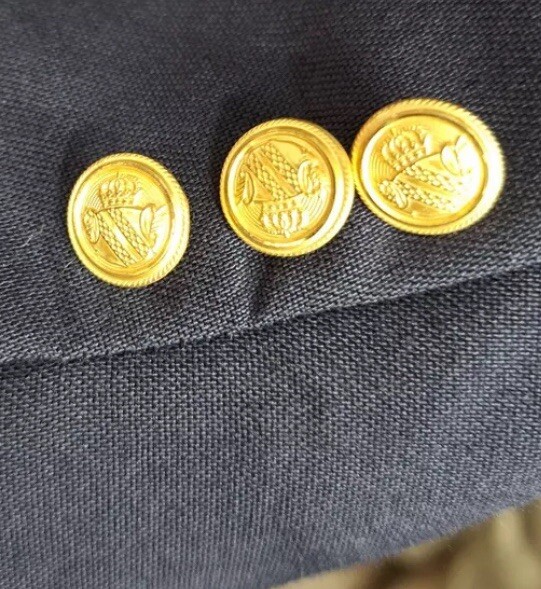 This is a David Taylor Sport Coat Blazer for men in size 46R, featuring a navy color with gold button accents. Made of a blend of polyester and wool, this blazer has a regular fit and a single-breasted cut with a two-button front closure. It is designed with a notch lapel style, three-button sleeve buttons, and a single-vented back. Suitable for various occasions including travel, weddings, parties, and business events, this blazer also includes inner pockets for added functionality. Perfect for a classic and elegant look, this blazer is a stylish choice for any season.