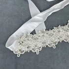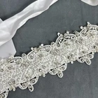 David's Bridal Ribbon Rhinestone Bridal Belt Sash White Applique Lace Gems with sequins, beads. Preowned, metal around rhinestones has tarnished to a gunmetal. Sold as-is. Please be sure to see all photos. Approximately 3" wide rhinestone applique part, 1.5" wide ribbon. Shipping costs are calculated to reflect shipping service rates based on weight and distance traveling. Thank you for looking!
