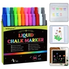 24 x Chalk Markers, DealKits Liquid Chalk Markers Chalkboard Markers for Acrylic Fridge Calendar Board,Window, Mirror,Glass,12 Vibrant Colors, 1mm Fine Points For Non-Porous Surface: The chalk pens are versatile for blackboards, windows, glass, tile, black labels, gloss, mirror and other non-porous surface. NOTE: Do not use it on any cheap blackboard or porous paint surfaces. Mess-Free and Dust-Free: Our chalk markers are designed to provide a clean and smooth writing experience without the mess. Perfect replacement of traditional chalk! Wet Erase:These non-toxic, water-based chalk markers can be erased easily by wiping the area with a damp cloth or paper towel making all paint to disappear without smudging or streaking. What you will receive: 24 liquid chalk markers ,12 Colors , 2 Markers per Color The Crafty Promise- If for any reason, you're not completely satisfied, simply contact us and we'll take care of it