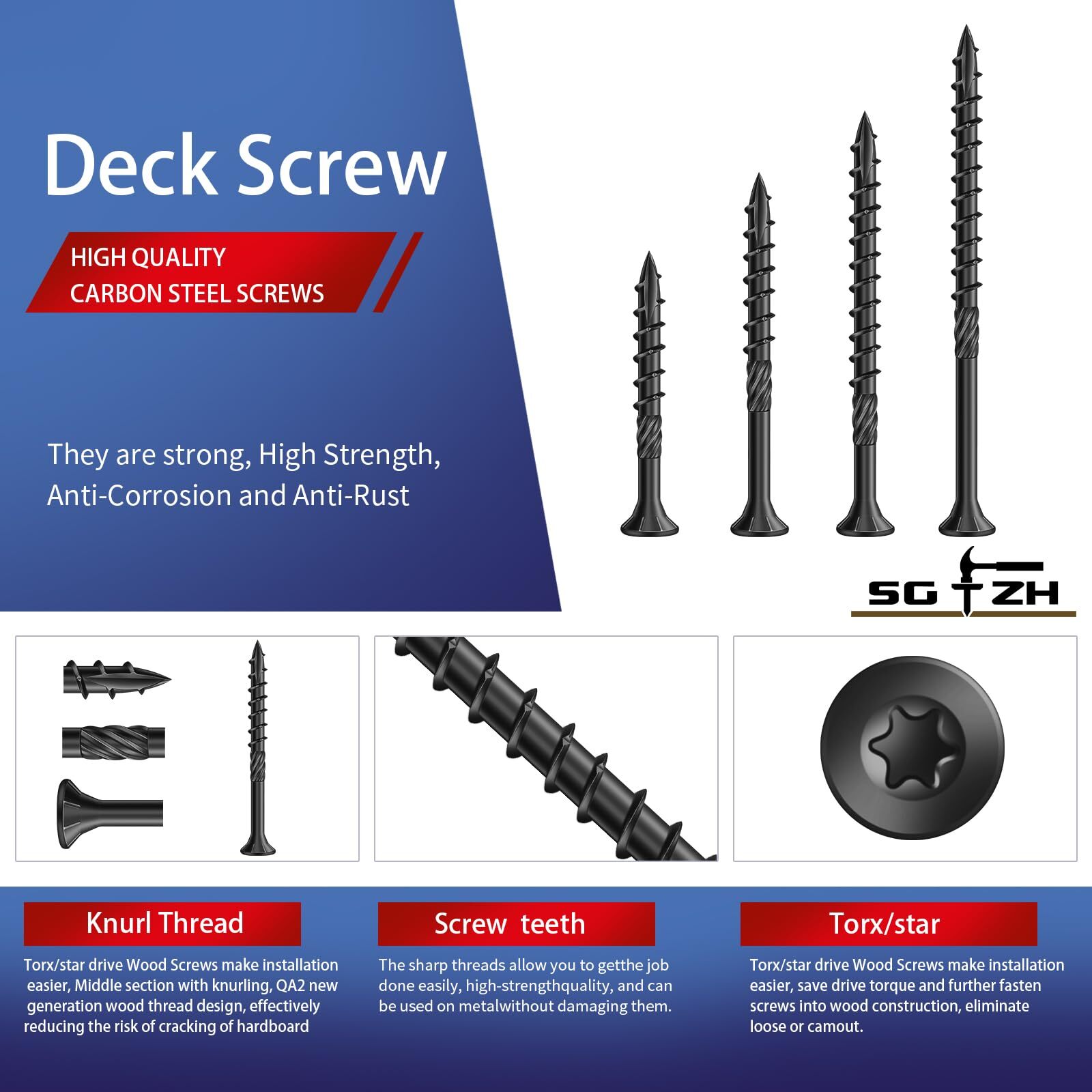 #8 x 1-1/4" Deck Screws (398Pcs) 2lb. Carbon Steel, Black, Flat Head, Rust Resistant epoxy Coated, with T25 Star Bit RUGGED AND DURABLE - Outdoor Wood Screws made of Thickened rod by, high quality low carbon alloy steel special heat treatment process,which has higher corrosion resistance and anti-rust effect than ordinary screws, longer service life, not easy to damage, more solid, excellent mechanical properti. EXQUISITE CRAFTSMANSHIP - This Deck Screws diameter: #8, length: 1-1/4inch, excellent craftsmanship makes our T25 star drive style, not slippery, fast, not easy to break, high strength, not easy to deform, not eccentric. Anti-corrosion coating - 1000-hours salt spray test, 4-layer coating provides superior protection against rust and corrosion the screws less prone to rust in outdoor construction Torx/star Drive + Knurl Thread - Torx/star drive Wood Screws make installation easier, Middle section with knurling, QA2 new generation wood thread design, effectively reducing the risk of cracking of hardboard Value Package, Easy to Use - This deck screw pack comes in approximately 398 pieces and comes with 2 T25 Star bits. They are suitable for various indoor and outdoor scenarios. Shipping We offer FREE shipping on all orders! We ship within Three business days of payment, usually sooner. We use a selection of shipping services such as UPS, FedEx, USPS etc. We only ship to the lower 48 states, no APO/FPO addresses or PO Boxes allowed. Local pickups and combined shipping options are not provided at this time. Return You can return a product for up to 30 days from the date you purchased it. Any product you return must be in the same condition you received it and in the original packaging. Please keep the receipt. Payment We accept payment by any of the following methods: PayPal Please pay as soon as possible after winning an auction, as that will allow us to post your item to you sooner! Feedback Customer satisfaction is very important to us. If you have any problem with your order, please contact us and we will do our best to make you satisfied. Contact Us If you have any queries, please contact us via ebay. We usually respond within 24 hours on weekdays. Please visit our eBay store to check out other items for sale! Thank you for shopping at our store.