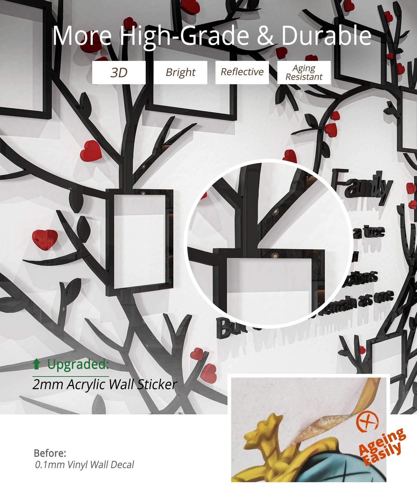DecorSmart Love Family Tree Wall Decor Picture Frame Collage Multicolor 【More High-Grade & Durable】— Due to its 3D, Bright, Reflective and Aging Resistant 2mm thickness acrylic material, it has a more high grade mirror effect, and much longer service life, compared with traditional vinyl wall decal; also much cheaper than traditional collage frames 【More Reliable Adhesive】—The adhesive layer is upgraded from 0.1mm to 2mm, which is more elastic, suitable for both smooth, slightly rough or textured walls, and has a strong viscosity 【More Reasonable Protective Film】—We upgraded the protective film on the product surface to make it very easy to remove. Old products use fragile brown kraft paper, which makes users spend more than a few hours to remove them 【Enjoying The Fun of DIY】—Just peel & stick to assemble the product with full-size stencil, it's simple and fun like jigsaw puzzles 【What You Get】—141 pieces of 2mm thick acrylic stickers, assembled 60-inches wide by 41-inches tall, full-size stencil, and friendly customer service Shipping We offer FREE shipping on all orders! We ship within Three business days of payment, usually sooner. We use a selection of shipping services such as UPS, FedEx, USPS etc. We only ship to the lower 48 states, no APO/FPO addresses or PO Boxes allowed. Local pickups and combined shipping options are not provided at this time. Return You can return a product for up to 30 days from the date you purchased it. Any product you return must be in the same condition you received it and in the original packaging. Please keep the receipt. Payment We accept payment by any of the following methods: PayPal Please pay as soon as possible after winning an auction, as that will allow us to post your item to you sooner! Feedback Customer satisfaction is very important to us. If you have any problem with your order, please contact us and we will do our best to make you satisfied. Contact Us If you have any queries, please contact us via ebay. We usually respond within 24 hours on weekdays. Please visit our eBay store to check out other items for sale! Thank you for shopping at our store.
