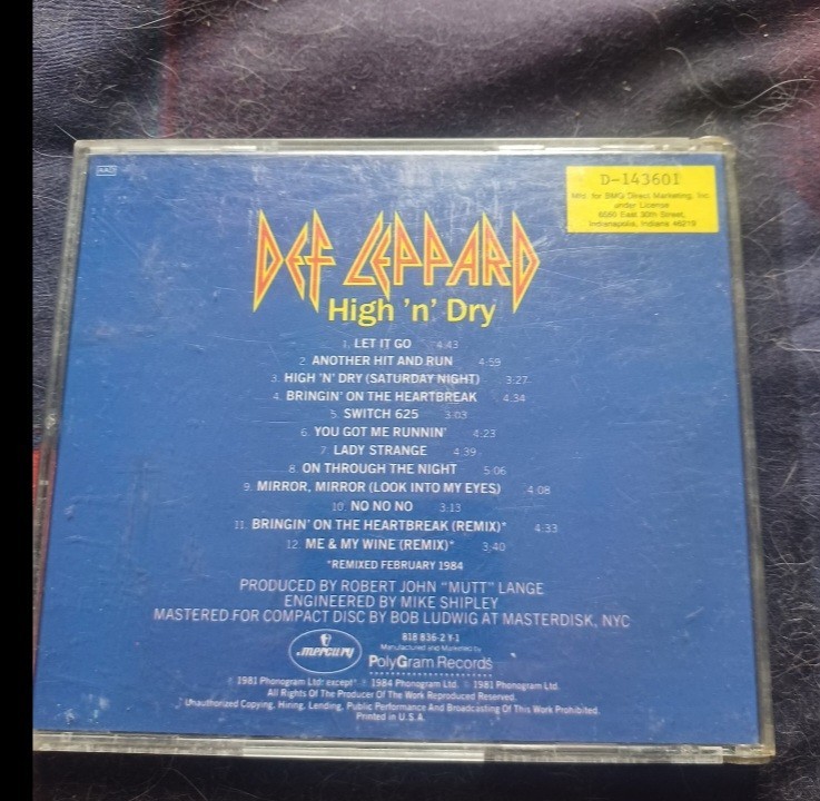 Def Leppard - High and Dry vg+/vg+ $8, Pyromania Delux Edition vg+/vg+ $12, Hysteria vg+/vg+ $8, Say Yeah vg+/vg+ $6 Ratt - Out of the Cellar vg+/vg+ $8, Invasion of your Privacy vg+/vg+ $8, Detonator vg+/vg+ $8 Reach For The Sky vg+/vg+ $8, Infestation vg+/vg+ $8 Poison - Look What the Cat Dragged In vg+/vg+ $8, Open Up and Say Ahhhhh vg+/vg+ $8, Swallow This Live vg+/vg+ $8